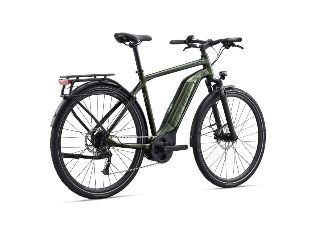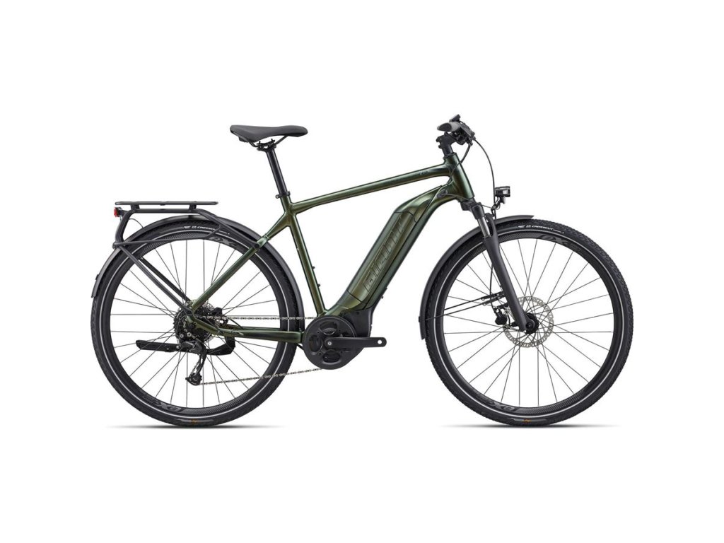 TREKINGOVÉ ELEKTROKOLO EXPLORE E+ BUDE VAŠIM PERFEKTNÝM SPOLOČNÍKOM NA VÝLETY KRAJINOU ALEBO AJ NA JAZDU V MESTE. VŠETKY NABÍDNUCIE MODELY SÚ VYBAVENÉ ZADNÝM NOSIČOM, BLATNÍKMI, OSVETLENÍM A STOJÁNKOM. VYBERAŤ MÔŽETE MEDZI KLASICKÝM RÁMOM (VERZIA GTS) A RÁMOM SO ZNÍŽENOU HORNOU TRUBKOU (VERZIA STA) PRE ĽAHŠIE NASTUPOVANIE A SESEDANIE Z BICYKLA. HLAVNÉ PREDNOSTI Hliníkový rám ALUXX Základom modelov série Explore E+ je moderný a ľahký hliníkový rám ALUXX s vnútorným vedením bowdenov. Jeho geometria je navrhnutá tak, aby bicykel bol skvele ovládateľný a jazda na ňom veľmi pohodlná. Rámy ALUXX si vyrábame sami v našej vlastnej továrni, takže máme plný dohľad nad tým, aby každý rám, ktorý opustí výrobnú linku, spĺňal vysoké štandardy kvality. Dostatok sily aj energie Motor SyncDrive Sport Yamaha disponuje točivým momentom 70 Nm. Vysoký komfort a istota Jazdu po nerovnostiach výrazne spríjemní odpružená vidlica so zdvihom 63 mm. Väčšiu istotu na hrubších cestách dodajú plášte Giant CrossCut Gravel v rozmere 700x45c a s reflexným prúžkom pre lepšiu viditeľnosť v cestnej premávke. Vysoký brzdný účinok a jemné dávkovanie brzdnej sily zabezpečia hydraulické kotúčové brzdy. Manipuláciu s bicyklom za chôdze vám uľahčí funkcia walk assist. Motor SyncDrive Sport, 70Nm, powered by Yamaha Ovládacia jednotka RideControl Dash, full color LCD screen Displej RideControl Dash, full color LCD screen Batéria EnergyPak 500Wh Veľkosť L Farba Phantom Green Rám ALUXX Aluminum, Overdrive head tube, integrated KS18 kickstand mount Vidlica SR Suntour NEX E25 DS 63mm travel Riadítka Giant Connect Riser 31.8x690mm Gripy Giant Contact Ergo Predstavec Giant Contact Sedlovka Giant 30.9mm, 2-bolt Micro Adjustable, Forged Aluminium Sedlo Selle Royal Vivo Ergo Moderate Pedále Aluminum Platform Prehadzovačka Shimano Altus Prehadzovačka Shimano Alivio, 9-speed Brzdy Tektro HD-M275, hydraulic disc, 160/180mm Brzdové páky Tektro HD-M275 Kazeta Shimano CS-HG200, 11-36T, 9-speed Reťaz KMC e.9 Sport, e-bike optimized Kliky Forged Alloy minimal Q-factor, 42T Ráfky Giant eX2, Tubeless Ready, 700c Aluminum Náboje Giant eTracker, [F] 100x9mm QR [R] 135mm QR Dráty Stainless steel Plášte Giant Crosscut Gravel 2, 700x45c (622x45), Tubeless Ready, Reflex Svetlo Axa BlueLine 30Lux Steady E6 front Axa BlueLine Steady E6 rear Nosič MIK rack. System bag and basket compatible