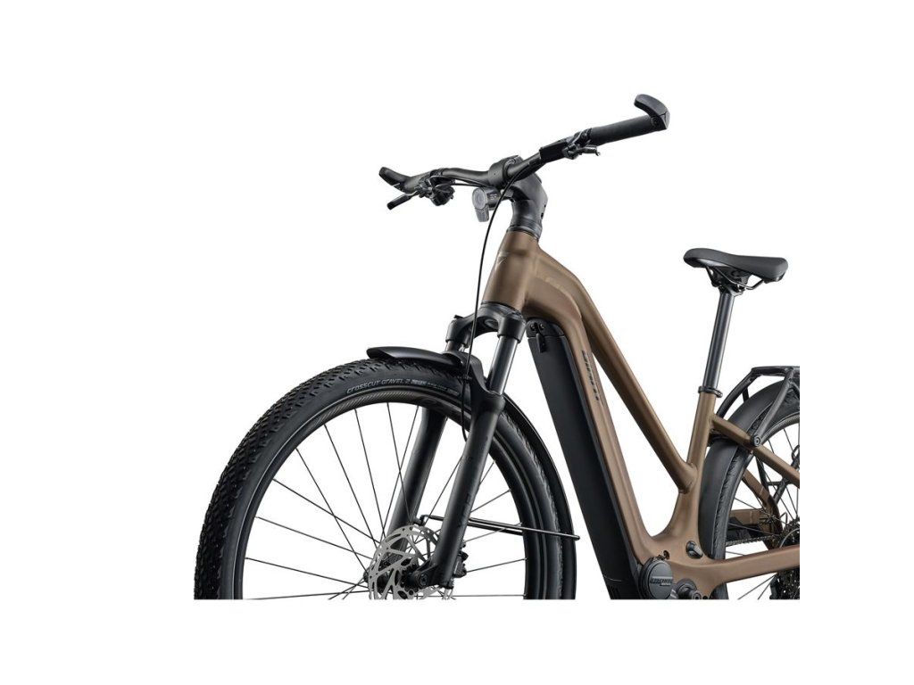 Nová generace trekingových elektrokol Explore E+ je přímo stvořená pro dobrodružství a dokáže i obyčejné každodenní dojíždění proměnit ve skvělý zážitek. A co teprve výlety za poznáním, ty budou naprosto nezapomenutelné. Nové Explore E+ přináší moderní design, dokonalou integraci a pokročilé technologie. Při jízdě vám poskytne plynulou podporu, dostatek energie i na delší trasy a vysoký komfort. Díky tomu všemu vám dá svobodu dojet ještě dál než dříve, bez ohledu na to, kam vás cesta zavede. Hlavní přednosti Motor SyncDrive Yamaha s plynulou podporou Středový motor SyncDrive Yamaha má při svých kompaktních rozměrech poctivý točivý moment 85 nebo 75 Nm (v závislosti na modelu kola a typu motoru – viz specifikace). K dispozici máte 5 režimů přípomoci nebo můžete zvolit automatický režim Smart Assist, který bude výši přípomoci nastavovat za vás, abyste se mohli plně soustředit na jízdu. Hladké spojení mezi motorem a vaší vlastní silou zajišťuje soustava šesti senzorů, která přesně vyhodnocuje, kolik energie má motor dodat, čímž se také optimalizuje spotřeba energie z baterie. Výsledkem je snadno předvídatelný a přirozený projev motoru a jízda je příjemná, plynulá a s optimálním množstvím výkonu pro danou jízdní situaci. Integrovaná baterie EnergyPak Baterie EnergyPak je uložena ve spodní rámové trubce a disponuje kapacitou 800 nebo 625 Wh (v závislosti na modelu kola – viz specifikace). Pokročilé BMS obvody (Battery Management System) optimalizují výkon nabíjení díky nepřetržité komunikaci mezi baterií a nabíječkou. Rychlé a zároveň bezpečné nabíjení baterie zajistí nabíječka EnergyPak 4A Smart Charger Compact – speciální elektronické obvody uvnitř nabíječky pomáhají prodloužit životnost baterie. V rámu je baterie bezpečně zajištěna zámkem ABUS Xplus. U modelů označených DD (klasický „pánský“ rám) je navíc možnost instalace přídavné baterie EnergyPak Plus 250 Wh (nabízena jako volitelné příslušenství). Chytré technologie a bezpečnostní prvky Pohodlné ovládání zajistí nový ovladač RideControl Ergo 4 umístěný na řídítkách u levé rukojeti a je zde také jednotlačítkový ovladač s LED diodami RideControl Go 2 integrovaný v horní rámové trubce. V představci integrovaný barevný displej RideDash EVO 2.0 s vysokým rozlišením a viditelností z různých úhlů přehledně zobrazuje veškeré důležité údaje. Bezpečnostní prvky zahrnují Aegis Radar pro detekci zezadu se blížících vozidel (pouze na modelu Explore E+ 0), elektronický zámek elektrokola s alarmem, Aegis Tire Checker pro měření tlaku v pneumatikách v reálném čase a systém Apple Find My pro sledování elektrokola. Všechny modely Explore E+ mají přední a zadní osvětlení. SPECIFIKACE HYBRIDNÍ TECHNOLOGIE MOTOR Giant SyncDrive Sport2, 75Nm PedalPlus 6-sensor technology OVLÁDACÍ JEDNOTKA Giant RideControl App enabled ANT+ wireless display signal with e-bike profile DISPLEJ Giant RideDash EVO 2.0, high-angle visibility, 3" full color LCD display, on-board navigation BATERIE Giant EnergyPak Smart 625Wh, Aluminium casing with highest safety standard (EN50604), CO2 Neutral production, Giant EnergyPak Plus 250 range extender compatible NABÍJEČKA Giant EnergyPak 4A smart charger compact, 60% charge in 2:30h KONEKTIVITA Giant RideControl App enabled ANT+ wireless display signal with e-bike profile RÁM VELIKOST L BARVA Pyrite Brown RÁM Gen 4 ALUXX aluminum, Overdrive 1.8" - 1.5" head tube, integrated battery, integrated KSA40 kickstand mount VIDLICE SR Suntour XCR34 2CR coil boost 100mm travel 15x110mm AH axle KOMPONENTY ŘÍDÍTKA Giant Contour Comfort Riser 31.8x720mm GRIPY RideControl Ergo4 Integrated Trekking (w/Bar-end) PŘEDSTAVEC Giant Contour EVO integrated 16⁰ NEW (S/M:80mm L/XL/XXL 100mm) SEDLOVKA Giant 30.9mm, 2-bolt Micro Adjustable, Forged Aluminium SEDLO Selle Royal Vivo Ergo Moderate Unisex PEDÁLY VPE-537 PP Platform Pedal OSAZENÍ ŘAZENÍ Shimano Deore Linkglide PŘEHAZOVAČKA Shimano Deore Linkglide 10-speed BRZDY Tektro HD-M280, hydraulic disc, 180mm BRZDOVÉ PÁKY Tektro HD-M280 KAZETA Shimano Linkglide, 11-43T, 10-speed ŘETĚZ Shimano Linkglide CN-LG500 KLIKY Forged alloy spider w/chainguard BCD 104, steel narrow/wide chainring 42T KOLA RÁFKY Giant eX25, Tubeless Ready, 622x25 Aluminium NÁBOJE Giant eTracker Boost 6-bolt disc 15x110mm [F] 12x148mm [R] DRÁTY Stainless steel, e-bike optimized PLÁŠTĚ Crosscut Gravel 2, 700x57c, Wire Bead, Tubeless Ready, w/ Reflection Strip DOPLŇKY Aegis Tire Checker PŘÍSLUŠENSTVÍ SVĚTLO Recon E HL50 StVZO [F] Rear Rack Integrated tail light [R] ZÁMEK ABUS Xplus battery lock NOSIČ MIK rack. System bag and basket compatible Tail light integrated Aegis Radar compatible BLATNÍKY Alluminum OMEZENÍ COMBINED MAXIMUM LOAD LIMIT Type 3 150kg