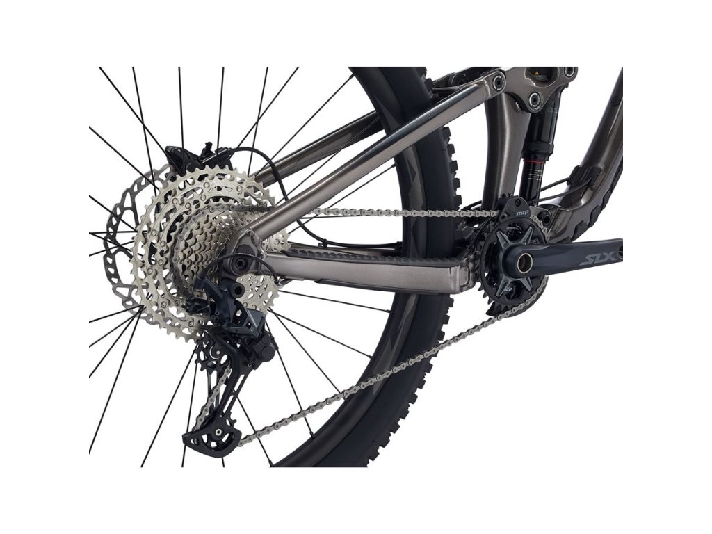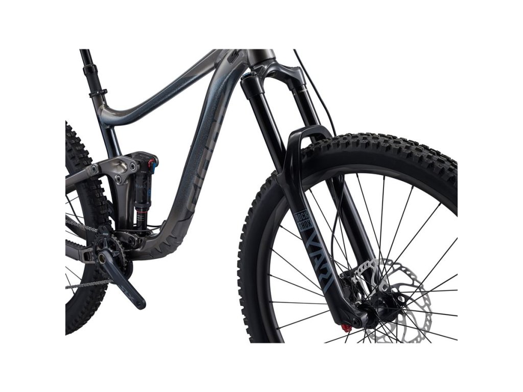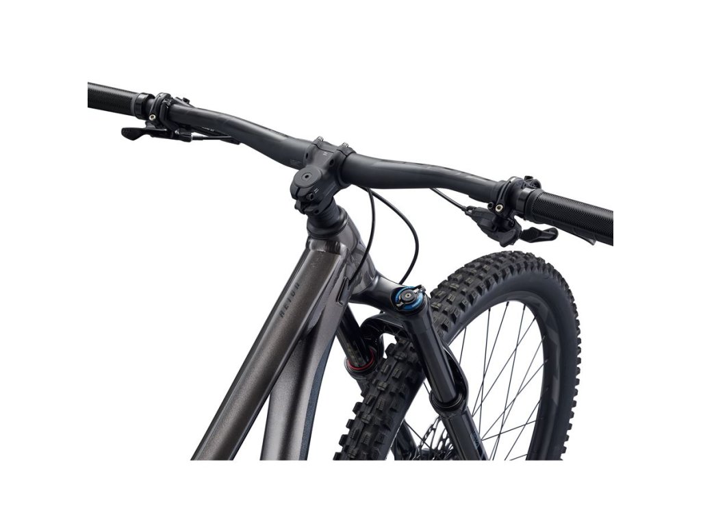 AČI UŽ PRAVIDELNE OBJEZDITE ENDURO ZÁVODY ALEBO DÁVATE PREDNOSŤ JAZDENIU BEZ ČASOMERY, REIGN 29 VÁS SVOJÍMI SCHOPNOSŤAMI PRÍJEMNE PREKVAPÍ. VĎAKA VÝBORNEJ GEOMETRII A SKVELÉMU ODPRUŽENIU MAESTRO VÁM POMÔŽE ZKROTIT AJ TEN NEJDIVOKEJŠÍ ENDURO TERÉN, NA TO SA MÔŽETE SPOĽAHNÚŤ! HLAVNÉ PREDNOSTI Hliníkový rám ALUXX SL a karbonové vahadlo Reign 29 je postavený na hliníkovom ráme z našej vysoko kvalitnej zliatiny ALUXX SL, ktorá zaručuje, že rám bude veľmi ľahký, ale zároveň dostatočne tuhý a pevný. Horné vahadlo odpruženia je pre vyššiu tuhosť a pevnosť a zároveň nižšiu hmotnosť vyrobené z jedného kusu karbonového kompozitu, jedná sa o technológiu Advanced Forged Composite. Moderná enduro geometria Tento závodne ladený enduro špeciál perfektne využíva všetky prednosti 29“ kolies a jeho geometria spĺňa všetky nároky na moderný enduro bike, to znamená kratšia zadná stavba (439 mm), dlhšia horná rámová trubka (reach vo veľkosti M je 451 mm) a samozrejme tie „správne“ uhly, povedané číslami je to 64,6° hlavový a 76,4° sedlový. Skvelé odpruženie Maestro Odpruženie Maestro poskytuje zdvih 146 mm a vpredu s ním spolupracuje vidlica so zdvihom 170 mm. Štyri starostlivo umiestnené čepy a dve vahadlá spoločne vytvárajú jeden virtuálny (plávajúci) stred otáčania zadnej stavby. Vďaka tomu je neutralizované pôsobenie zadnej brzdy a systém je plne aktívny a vysoko citlivý k všetkým typom nerovností, a to bez nežiadúceho pohupovania pri šliapaní. Veľkosť XL Farba Metal / Black Diamond Rám ALUXX SL-Grade Aluminum front and rear triangles, 146mm Maestro suspension, 12x148mm thru-axle Vidlica RockShox Yari RC, 170mm, 15x110 Maxle Stealth, 44mm offset, custom tuned for Giant Tlmič RockShox Deluxe Select+, 205/60, custom tuned for Giant Riadičky Giant Contact TR35, 800x35mm, 20mm rise Gripy Giant Tactal Pro Single Predstavec Giant Contact SL 35 Sedlovka Giant Contact Switch dropper, remote Prehadzovačka Shimano SLX SL-M7100, 1x12 Prehadzovačka Shimano SLX RD-M7100 Brzdy Shimano Deore BR-MT520, hydraulické, Shimano RT-66 rotory [F]203mm, [R]203mm Brzdové páky Shimano Deore BL-MT501 Kazeta Shimano Deore M6100, 10x51 Reťaz Shimano Kľuky Shimano SLX, 32t Stred Shimano, press fit Ráfky Giant AM 29, zliatina Náboje zliatina, uzavreté Drôty Sapim Plášte [F] Maxxis Assegai 29x2.5 WT, 3C MaxxTerra, EXO+, TR [R] Maxxis Minion DHR II 29x2.4 WT, 3C MaxxTerra , EXO+, TR tubeless Doplňky tubeless pripravené, 2.5' max rozmer plášťa, 36t max rozmer reťazového kolieska, MRP AMG CS reťazový vodítko.
