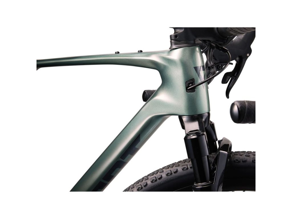 OSTRÉ ZJAZDY, ZRADNÉ POVRCHY A KAMENE VŠETKÝCH TVAROV A VEĽKOSTÍ – NIKDY NEVÍTE, ČO VŠETKO NA VAŠEJ GRAVELOVÉJ JAZDE POTKÁTE. NOVÝ KARBÓNOVÝ REVOLT X S ODPRUŽENOU VIDLICOU JE NAVRHNUTÝ PRE EŠTE VIAC DOBRODRUŽNÉ POJETIE GRAVEL JAZDENIA A KOMBINUJE EFEKTIVITU A ISTOTU V OVLÁDANÍ S EŠTE LEPŠÍMI SCHOPNOSŤAMI PRE JAZDU V HRUBŠOM TERÉNE. HLAVNÉ VÝHODY Karbónový rám a odpružená vidlica Základom modelu Revolt X Advanced Pro je veľmi ľahký, vysoko tuhý a zároveň veľmi pohodlný karbónový rám Advanced Composite. Moderná gravel geometria rámu je plne optimalizovaná pre použitie odpruženej vidlice so zdvihom 40 mm – ide o vidlicu navrhnutú špeciálne pre gravel bicykle, ktorá vám umožní jazdiť hrubším terénom ešte plynulejšie a s väčšou istotou. Vysoký komfort Rám má nižšie umiestnené sedlové vzpere menšieho priemeru pre ešte lepšie pohlcovanie nárazov a vibrácií. K vyššiemu komfortu prispievajú aj riadidlá Contact SL XR D-Fuse, ktoré pod záťažou mierne pružia, avšak bez zníženia tuhosti pri zatáčaní, stúpaní alebo jazde zo sedla. Pre väčšie pohodlie v zadnej časti bicykla je použitá teleskopická sedlovka, ktorá poskytuje aj mierne pruženie. Prispôsobenie bicykla podľa terénu Flip chip zadné patky umožňujú meniť rázvor kolies o 10 mm – kratší rázvor prináša vyššiu obratnosť bicykla, dlhší rázvor zlepšuje stabilitu pri vyšších rýchlostiach a zároveň sa v tomto nastavení zväčšuje priestor pre zadný plášť až na 53 mm. Rám tiež umožňuje voľbu typu sedlovky – okrem klasickej kulatej 30,9 mm je možné použiť aj sedlovku Giant D-Fuse, ktorá veľmi dobre tlmí nárazy a vibrácie. RÁM VEĽKOSŤ ML FARBA Gloss Misty Forest/Matte Black Diamond RÁM Advanced-Grade Composite, 12x142mm thru-axle, disc, flip chip dropout VIDLICA RockShox Rudy XPLR, 40mm, cartridge damper 12x100mm thru-axle KOMPONENTY RIADIDLÁ Giant Contact SL XR D-Fuse, 16-degree flare XS:44cm, S:44cm, M:46cm, M/L:46cm, L:48cm, XL:48cm GRIPY Stratus Lite 3.0 PREDSTAVEC Giant Contact, 8-degree XS:50mm, S:60mm, M:70mm, M/L:80mm, L:80mm, XL: 80mm SEDLOVKA Postmodern, dropper, 30.9mm s 25mm pružením XS:365mm / 75mm drop S:415mm / 100mm drop M:415mm / 100mm drop M/L: 415mm / 100mm drop L:415mm / 100mm drop XL: 415mm / 100mm drop SEDLO Giant Approach SL OSAZENIE ŘAZENÍ SRAM Rival 1, 1x11 PREHÁZAČ SRAM Rival 1 BRZDY SRAM Rival 1 hydraulické, SRAM PaceLine rotory [F]160mm, [R]160mm BRZDOVÉ PÁKY SRAM Rival 1, left lever dropper switch KAZETA SRAM Rival, 11-rýchlostná, 11x42 ŘETĚZ SRAM PC-1130 KLIKY SRAM Rival D1 DUB, 40t XS:170mm, S:170mm, M:172.5mm, M/L:172.5mm, L:175mm, XL:175mm STRED SRAM DUB, press fit KOLA RÁFKY Giant CXR X1 Carbon Disc WheelSystem, [F] 25.8mm, [R] 25.8mm NÁBOJE [F] Giant AR alloy, CenterLock, 12mm thru-axle [R] Giant AR alloy, DT350 36t ratchet system, CenterLock, 12mm thru-axle DRÁTY Sapim CX-Ray PLÁŠTĚ Giant CrossCut Grip 1, 700x45c, tubeless DOPLNKY tubeless prepared, 53mm max tire size in 'long' flip chip position, 45mm max tire size in 'short' flip chip position Gravel Crusher: The Revolt X Range