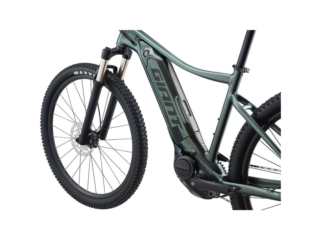 POKIAĽ HĽADÁTE KVALITNÉ, SPOĽAHLIVÉ A ZÁROVEŇ CENOVO DOSTUPNÉ HORSKÉ ELEKTROKOLO, TALON E+ SPLŇA VŠETKY TIE TO POŽIADAVKY. VYUŽÍVA MOTORA SYNCDRIVE CORE YAMAHA, KTORÝ MÁ PLYNULÝ NÁSTUP A JEHO CHOD JE PREDVÍDATEĽNÝ, HLADKÝ A TICHÝ, ZKRÁTKA JAKO PRIRODZENÉ NAVÝŠENIE VAŠEJ VLASTNEJ ENERGIE. ELEKTRICKÚ ENERGIU MOTORA DODÁVA BATÉRIA ENERGYPAK S KAPACITOU 500 WH. HLAVNÉ PREDNOSTI Dostatok sily aj energie Stredový motor SyncDrive Core Yamaha produkuje točivý moment 50 Nm a maximálnu podporu 300 %. Nie je teda tak silný ako ostatné motory SyncDrive, ale má vďaka tomu menšiu spotrebu energie z líthiovej batérie EnergyPak 500 Wh. Batériu nájdete na spodnej rámovej trubke, s ktorou elegantne splýva. Na ráme je zabezpečená zámkom a vyberá sa do strany. Automatický režim Smart Assist Motor vám ponúka päť jazdných režimov s nastavenou hodnotou podpory a tiež plne automatický režim Smart Assist, v ktorom systém nastavuje výšku asistencie motora za vás. Vďaka tomu môžete úplne zabudnúť na prepínanie režimov počas jazdy a sústrediť sa na jazdu samotnú. Kvôli tejto funkcii je kolo vybavené (okrem štyroch základných senzorov) aj senzormi zrýchlenia a náklonu. Ovládacia jednotka s displejom Jednotka RideControl Dash, ktorú máte hneď po ruke pri ľavej rukoväti, vám umožní komfortne ovládať vaše elektrokolo. Okrem tlačidiel na prepínanie jazdných režimov je súčasťou tejto jednotky aj prehľadný a veľmi dobre čitateľný farebný displej, ktorý zobrazuje najdôležitejšie údaje o jazde vrátane presného stavu batérie. Je tu aj USB-C konektor, ktorý sa bude hodiť na nabíjanie telefónu. Motor SyncDrive Core, 50Nm, Powered by Yamaha Ovládacia jednotka RideControl Dash, full color LCD screen Displej RideControl Dash, full color LCD screen Batéria EnergyPak 500Wh Veľkosť S Farba Balsam Green Rám ALUXX Aluminum, Overdrive head tube, integrated KS18 kickstand mount Vidlica SR Suntour XCR 32 Coil LO Boost 29 100mm travel, Tapered steerer, lockout Riadiť Giant Connect TR Riser 31.8x690~750mm Gripy Giant Sole-O Grip Predstavec Giant Contact Sedlovka Giant 30.9mm, 2-bolt Micro Adjustable, Forged Aluminium Sedlo Giant Sport Pedály Aluminum Platform Radenie Shimano Deore Prehadzovačka Shimano Deore, 10-speed, Shadow+ Brzdy Tektro HD-M280, hydraulic disc, 180mm Brzdové páky Shimano BL-MT200 Kazeta Shimano HG50-10, 11-42T, 10-speed Reťaz KMC e.10 Sport, e-bike optimized Kliky FSA Comet E-Bike crank arm set FSA MegaTooth Direct-mount 1X steel 36T Ráfky Giant GX03V Náboje Giant eTracker Sport, [F] 15mm Thru-Axle [R] 9mm QR, e-bike optimized Drôty Stainless steel Plášte Maxxis Rekon 29x2.4' Wire Bead 60TPI