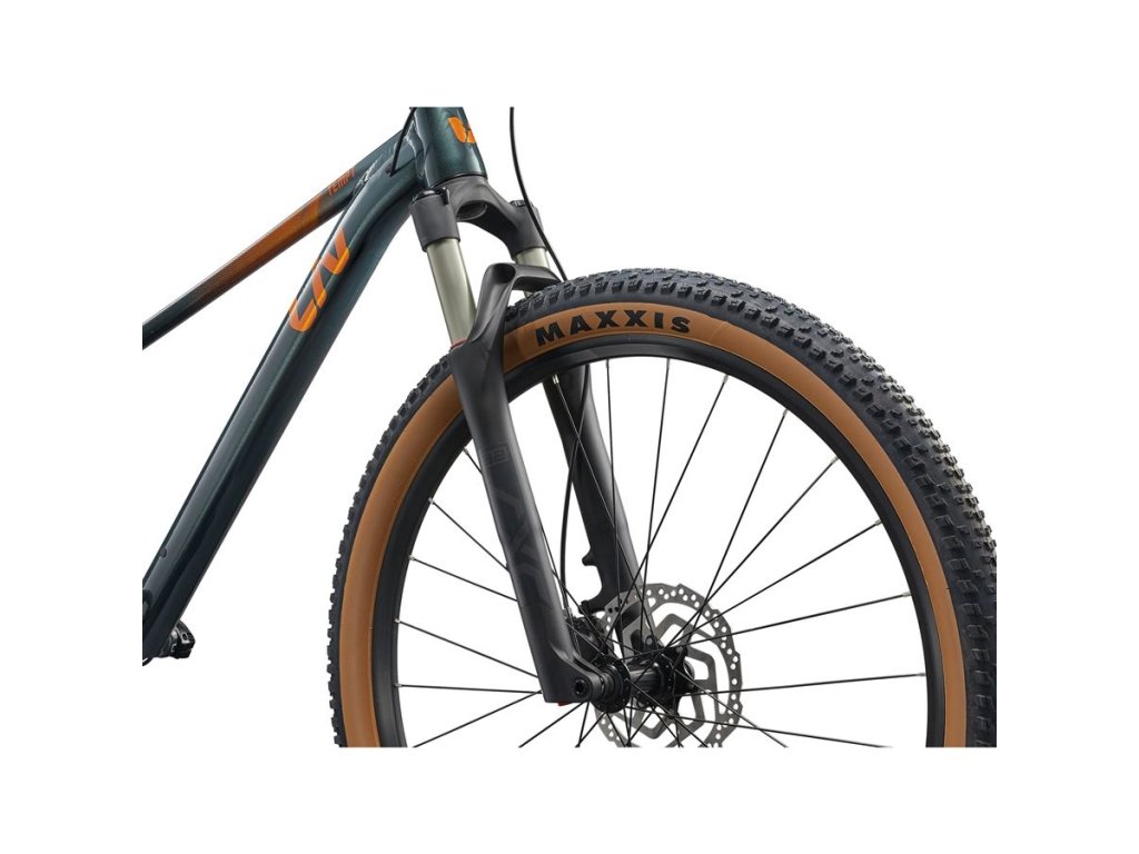 Vzduchová odpružená vidlice Giant SXC32-2 se zdvihem 80 nebo 100 mm (v závislosti na velikosti kol) a pevnou osou 15x110 mm bude citlivě žehlit všechny nerovnosti. Ve sjezdech a technických pasážích určitě oceníte z řídítek ovládanou teleskopickou sedlovku, díky které bude jízda bezpečnější i zábavnější. Lepší ovladatelnost kola zajistí širší řídítka a více jistoty vám dodají také pláště v šířce 2,4“. Při brzdění se můžete spolehnout na hydraulické kotoučové brzdy.