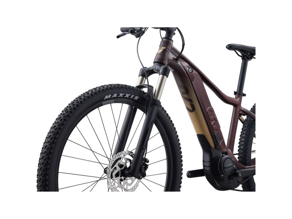 AK HĽADÁTE KVALITNÉ, SPOĽAHLIVÉ A ZÁROVEŇ CENOVO DOSTUPNÉ HORSKÉ ELEKTROKOLO, UŽ NEHĽADAJTE ĎALEJ. MODEL TEMPT E+ VYUŽÍVA MOTOR SYNCDRIVE CORE YAMAHA, KTORÝ MA PLYNULÝ NÁSTUP A JEHO CHOD JE PREDVÍDATEĽNÝ, HLAdký A TICHÝ, ZKRÁTKA AKO PRIRODZENÉ ZVÝŠENIE VAŠEJ VLASTNEJ ENERGIE. ELEKTRICKÚ ENERGIU MOTORA DODÁVA BATÉRIA ENERGYPAK S KAPACITOU 500 WH. HLAVNÉ PREDNOSTI Hliníkový rám ALUXX Model Tempt E+ je postavený na hliníkovom ráme ALUXX s moderným dizajnom a pohodlnou geometriou, ktorá zohľadňuje špecifiká ženského tela aj štýlu jazdy. Aby bola zabezpečená optimálna veľkosť rámu a priemer kolies pre správne jazdné vlastnosti bicykla, veľkosti M a L využívajú priemer kolies 29“ a menšie veľkosti XS a S majú priemer kolies 27,5“. Rám bicykla je pripravený na dodatočnú montáž stojana pomocou integrovaného úchytu. Motor Yamaha a batéria EnergyPak Stredový motor SyncDrive Core Yamaha produkuje točivý moment 50 Nm a podporu až 300 %, čo sú z hľadiska zamerania tohto modelu optimálne hodnoty, ktoré navyše prispievajú k menšej spotrebe energie z batérie. Okrem piatich jazdných režimov s nastavenou hodnotou podpory je k dispozícii aj plne automatický režim Smart Assist. Batéria EnergyPak 500 Wh je začlenená do spodnej rámovej trubice, so ktorou elegantne splýva. Na ráme je zabezpečená zámkom a vyberá sa do strany. Prehľadný farebný displej Ovládacia jednotka RideControl Dash, ktorú máte hneď po ruke pri ľavej rukoväti, vám umožní komfortne ovládať vaše elektrokolo. Okrem tlačidiel obsahuje aj prehľadný a veľmi dobre čitateľný farebný displej, ktorý zobrazuje najdôležitejšie údaje o jazde vrátane stavu batérie. Nechýba samostatné tlačidlo funkcie dopomoci pri vedení bicykla za chôdze (tzv. walk assist) a je tu aj USB-C konektor, ktorý sa bude hodiť na nabíjanie telefónu. Motor SyncDrive Core, 50Nm, Powered by Yamaha Ovládacia jednotka RideControl Dash, full color LCD screen Displej RideControl Dash, full color LCD screen Batéria EnergyPak 500Wh Veľkosť XS, kolesá 27,5' Farba Figuier Rám ALUXX Aluminum, Overdrive head tube, integrovaný úchyt na stojan Vidlica SR Suntour XCR 32 Coil LO Boost 29/27.5 100mm travel, Tapered steerer, lockout Riadítka Giant Connect TR Riser 31.8x690mm, 750mm Gripy Liv Connect Ergo Microtech Plus, Lock-on Predstavec Giant Contact Sedlovka Giant 30.9mm, 2-bolt Micro Adjustable, Forge Aluminium Sedlo Liv Sport Pedály Hliníková platforma Prehadzovanie Shimano Deore Prehadzovačka Shimano Deore, 10-speed, Shadow+ Brzdy Tektro HD-M280, hydraulická disková brzda, 180mm Brzdové páky Shimano BL-MT200 Kazeta Shimano HG50-10, 11-42T, 10-speed Reťaz KMC e.10 Sport, e-bike optimized Kliky FSA Comet E-Bike crank arm set FSA MegaTooth Direct-mount 1X steel 36T Ráfky GX03V Náboje Giant eTracker Sport, [F] 9mm QR [R] 135mm QR Dráty Nerezová oceľ Plášte Maxxis Rekon 27.5x2.4'