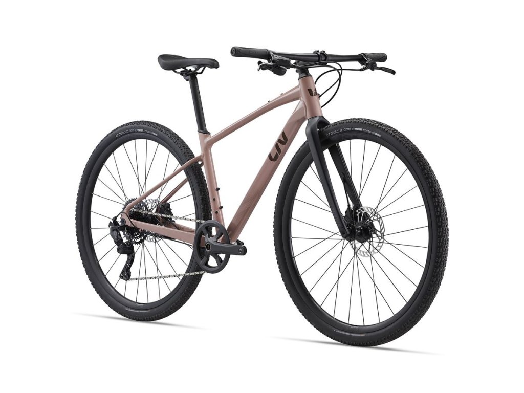 Predstavte si ľahké, pohodlné a skvele ovládateľné cestné bicykel, ale univerzálnejšie. Práve taký je model Thrive GX s hliníkovým rámom, karbonovou vidlicou, širšími plášťami a rovnými riadidlami, ktoré vytvárajú pohodlnú jazdnú pozíciu a prinášajú väčšiu istotu než klasické cestné riadidlá. Vďaka tomu je Thrive GX ideálny na fitness jazdy, ale môžete ho využívať aj ako gravel bike alebo na jazdenie v meste. Hlavné prednosti Hliníkový rám ALUXX SL a karbonová vidlica Thrive GX je postavený na ľahkom a pohodlnom hliníkovom ráme ALUXX SL s karbonovou vidlicou Advanced Composite. Rám má špecifickú dámsku geometriu pre maximálne pohodlie aj pri celodenných jazdách. Celkový vzhľad rámu a tým aj celého bicykla vylepšuje vedenie bowdenov vo vnútri rámu a integrovaná sedlová objímka. Na ráme sú montážne body pre inštaláciu košíkov na fľašu, zadného nosiča, blatníkov a ďalšieho príslušenstva. Výborná ovládateľnosť Geometria rámu je prispôsobená rovnými riadidlami a umožňuje vzpriamenejšiu pozíciu tela pre sebaisté ovládanie bicykla. Hydraulické kotúčové brzdy poskytujú silný brzdný výkon a plynulú moduláciu, čo zlepšuje ovládanie bicykla, a to aj pri premenlivom počasí. Brzdové třmeny sú upevnené pomocou moderných plochých úchytov a 12mm pevné osy zabezpečujú potrebnú tuhosť. Slúžka vidlice OverDrive zvyšuje tuhosť riadenia a tým aj zlepšuje ovládateľnosť bicykla. Komfort a všestrannosť Tlmiť vibrácie a zvyšovať tak vaše pohodlie pomáha karbonová vidlica a aj sedlovka D-Fuse, ktorá vďaka svojmu špecifickému „D“ tvaru umožňuje mierne „pruženie“ a tým znižuje intenzitu vibrácií prichádzajúcich od povrchu. Bicykel je osadený pohodlným dámskym sedlom a ergonomicky tvarovanými gripmi. K vyššiemu komfortu a istote prispievajú aj širšie plášte v rozmere 700x45c a s jemným vzorkom, ktorý oceníte pri jazde po nezpevnených cestách alebo cestách s horším povrchom. ŠPECIFIKÁCIA RÁM VEĽKOSŤ XS FARBA Petra Clay RÁM ALUXX SL-Grade Aluminum, 12x142mm thru-axle, disc VIDLICA Advanced-Grade Composite, full-composite OverDrive steerer, 12x100mm, disc KOMPONENTY RIADIDLÁ Giant Connect, flat XS:60cm, S:60cm, M:64cm, L:64cm GRIPY Liv ErgoMax PREDSTAVEC Giant Sport XS:80mm, S:80mm, M:90mm, L:100mm SEDLOVKA Giant D-Fuse, alloy, 350mm SEDLO Liv ErgoMax PEDÁLY platform pedal OSAZENIE ŘAZENÍ MicroSHIFT Advent SL-M9195, 1x9 PREHAZOVAČKA MicroSHIFT Advent RD-M6195M BRZDY Tektro HD-R280, hydraulic [F]160mm, [R]160mm BRZDOVÉ PÁKY Tektro hydraulic KAZETA MicroSHIFT CS-H093, 11x42 REŤAZ KMC X9 KLIKY ProWheel RPL, 40t XS:165mm, S:170mm, M:170mm, L:172.5mm STRED cartridge KOLA RÁFKY Giant SX-2 wheelset NÁBOJE Giant alloy, 12mm thru-axle DRÁTY stainless PLÁŠTE Giant CrossCut Grip 2, 700x45c DOPLŇKY kickstand, 47mm max tire size