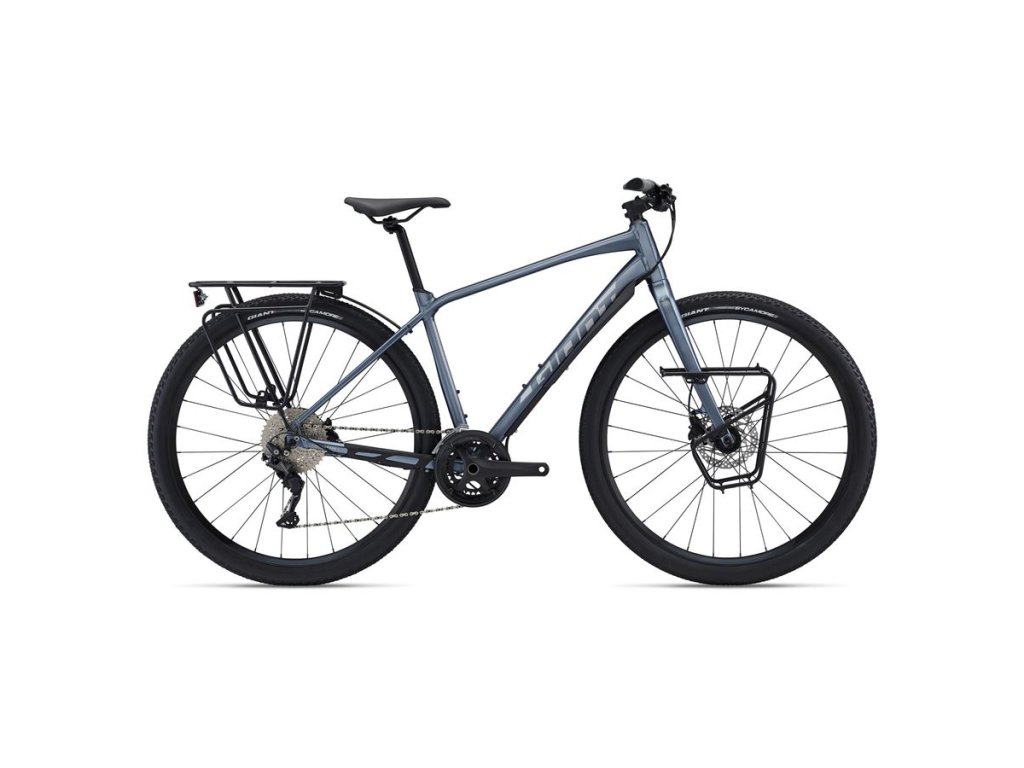 KEĎ CESTA SKONČÍ, DOBRODRUŽSTVO ZAČÍNA. MODEL TOUGHROAD SLR KOMBINUJE VLASTNOSTI CYCLOKROSOVÉHO A HORÁCKEHO KOLA A JE URČENÝ PREDOVŠETKÝM NA POZNÁVACIE VÝLETY, AJ S KOMPLETNOU VÝBAVOU NA POBYT MIMO DOMOVA. ZKRÁTKA IDEÁLNE KOLA NA TAKZVANÝ BIKEPACKING, ČIŽE CESTOVANIE S BRAŠNAMI. HLAVNÉ PREDNOSTI Hliníkový rám ALUXX SLR a karbonová vidlica ToughRoad SLR je postavený na veľmi ľahkom hliníkovom ráme ALUXX SLR, na výrobu ktorého používame vysoko kvalitnú zliatinu série 6011A a pokročilý proces zoslabovania. Potrebná tuhosť a pevnosť rámu je aj pri veľmi nízkej hmotnosti samozrejme zachovaná. Vidlica je pre lepšie tlmenie vibrácií karbonová s hliníkovým stĺpikom. Vysoký komfort Sedlovka D-Fuse tlmí vibrácie lepšie než klasická okrúhla sedlovka, a to vďaka svojmu špecifickému „D“ tvaru, ktorý umožňuje mierne „pruženie“ sedlovky pod záťažou. Väčšie pohodlie zabezpečia aj plášte Giant v poctivom rozmere 700x50c s ochranou proti defektu, ktoré vám dodajú aj väčšiu istotu na horších cestách. Nechýbajú ani ergonomicky tvarované rukoväte Giant Connect Ergo, ktoré dobre tlmia vibrácie. Kompatibilita s nosičmi Prívrženci extra dlhých výletov, napríklad aj vícedenných, iste ocenia možnosť namontovať na rám predný aj zadný nosič. Keď teda bude treba, unese kolo aj kompletnú výbavu na pobyt kdekoľvek mimo domova. Vyšší z dvoch ponúkaných modelov (ToughRoad SLR 1) je už nosičmi vybavený. Príjemným „bonusom“ pri oboch modeloch je blatníček X-Defender na spodnej rámovej trubke. VEĽKOSŤ M FARBA Knight Shield RÁM ALUXX SLR-Grade Aluminum, disc VIDLICE Advanced-Grade Composite, alloy OverDrive steerer, disc RIADÍTKA Giant Contact XC, 31.8mm GRIPY Giant Connect Ergo PREDSTAVEC Giant Contact, 8-degree SEĎLOVKA Giant D-Fuse, alloy, 350mm SEĎLO Giant Sport PEDÁLY platform PREDAJ Shimano Deore, 2x10 PRESMÝKAČ Shimano Deore PREHAZOVAČKA Shimano Deore BRZDY Shimano BL-MT200 hydraulic, [F]160mm, [R]160mm rotory BRZDOVÉ PÁKY Shimano BL-MT200 KAZETA Shimano CS-M4100, 11x42 ŔETEZ KMC X10 s Missing Link KLIKY ProWheel RPP 521P, 32/44 s chainguard STRED cartridge RÁFKY Giant double wall aluminum NÁBOJE alloy, 28h DRÁTY stainless, 14g PLÁŠTE Giant Sycamore S, 700x50c, FlatGuard Deflect 2 DOPLŇKY front/rear racks, X-DeFender protection, 53mm max tire size