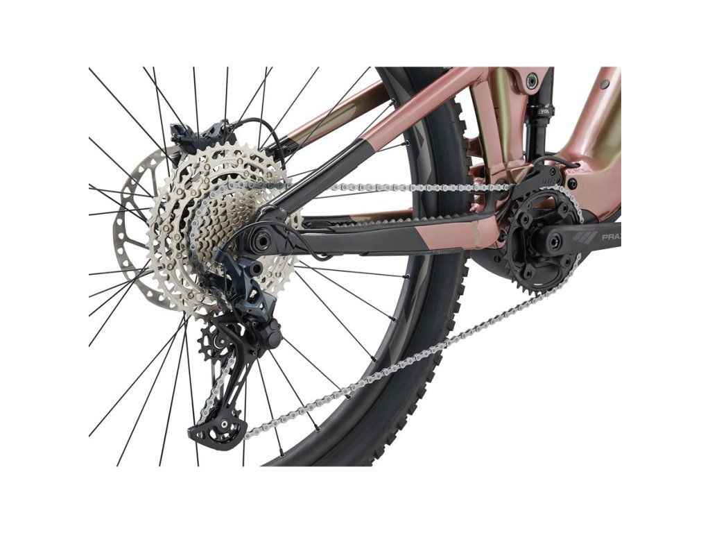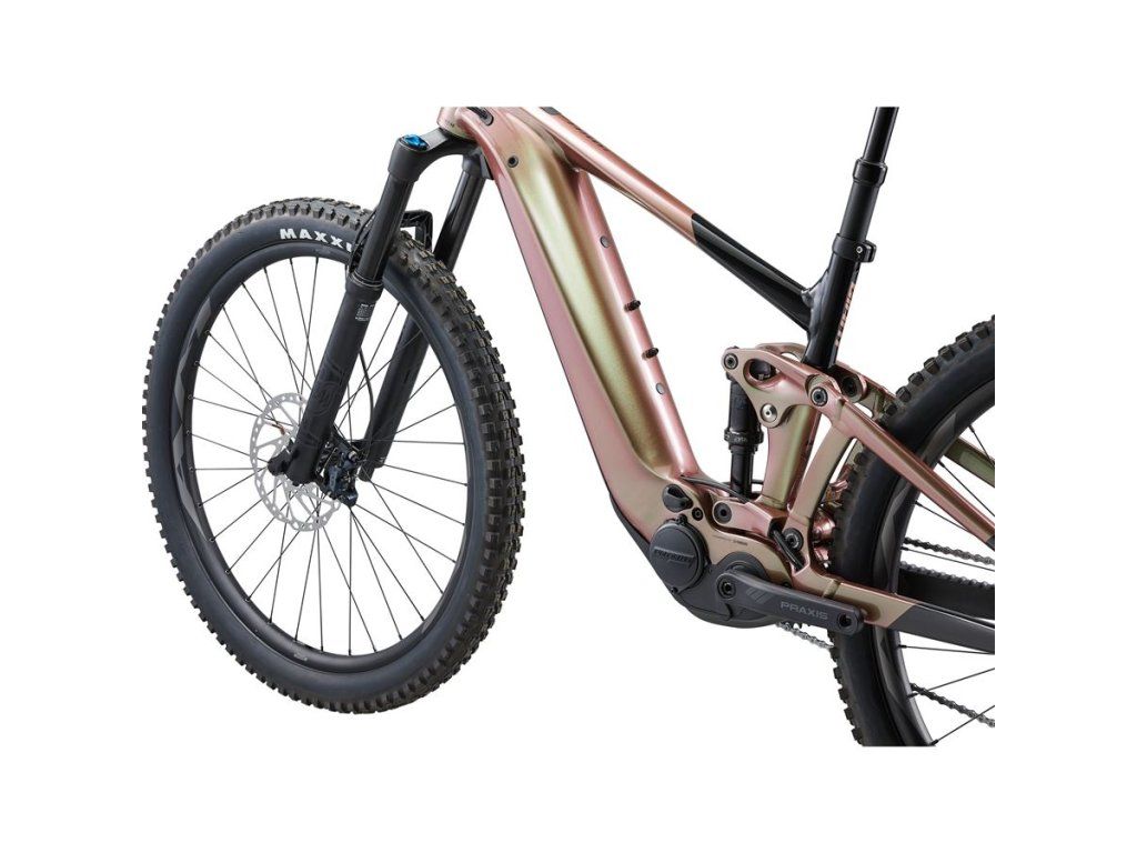 TENTO CELOODPRUŽENÝ TRAILOVÝ E-BIKE S HLINÍKOVÝM RÁMEM JE OSAZEN MOTOREM SYNCDRIVE PRO YAMAHA NEJNOVĚJŠÍ GENERACE, KTERÝ MÁ PŘI KOMPAKTNÍCH ROZMĚRECH VYSOKÝ TOČIVÝ MOMENT I MAXIMÁLNÍ PODPORU. ODPRUŽENÍ MAESTRO POSKYTUJE PLNĚ AKTIVNÍ ZDVIH 140 MM A DÍKY NASTAVITELNÉ GEOMETRII SI MŮŽETE KOLO PŘIZPŮSOBIT PODLE VAŠICH PREFERENCÍ. HLAVNÍ PŘEDNOSTI Vysoký výkon a dlouhý dojezd Motor SyncDrive Pro Yamaha poskytuje točivý moment 85 Nm a podporu až 400 %. Vyladěn je pro jízdu v těžším terénu – velmi dobře reaguje na točivý moment od jezdce a vytváří silnou podporu i při nízkých rychlostech. Integrovaná baterie EnergyPak Smart nabízí vysokou kapacitu 800 Wh (750 Wh u modelu Trance X E+ 3), rychlé nabíjení zajistí nabíječka Smart Charger. Rám kola je navíc připraven pro instalaci druhé baterie, která přidá 250 Wh (baterie EnergyPak Plus je nabízena samostatně). Pohodlné ovládání motoru Pro komfortní ovládání motoru jsou na kole dvě ovládací jednotky. Přímo u rukojeti je nenápadný ovladač RideControl Ergo 3, kterým můžete přepínat jízdní režimy i za jízdy v náročnějším terénu. Přímo na rámu je ovladač RideControl Go, což je víceúčelové tlačítko a barevné LED diody, které indikují zvolený jízdní režim a stav baterie. Další užitečné funkce (např. možnost vyladění podpory v jednotlivých jízdních režimech) nabídne mobilní aplikace Giant RideControl. Skvělé odpružení a nastavitelná geometrie Odpružení Maestro je plně aktivní a vysoce citlivé, jízda v terénu je díky tomu příjemnější a zábavnější. Tento systém také eliminuje nežádoucí pohupování při šlapání, takže neztrácíte energii a jedete plynuleji, rychleji a s menší námahou. Horní vahadlo odpružení má v sobě tzv. flip chip, který slouží ke snadné úpravě geometrie kola – pozice Low je vhodná pro rychlý „agresivní“ terén, nastavení do polohy High vytváří spíše XC-orientovanou jízdní pozici. HYBRIDNÍ TECHNOLOGIE MOTOR SyncDrive Pro, 85Nm, powered by Yamaha OVLÁDACÍ JEDNOTKA RideControl GO integrated in TT, RideControl Ergo 3 DISPLEJ ANT+ Wireless display compatible BATERIE EnergyPak Smart 800, EnergyPak Plus 250Wh range extender compatible RÁM VELIKOST XL BARVA Messier/Black RÁM ALUXX SL-grade Aluminum, Advanced Forged Composite linkage, 140mm Maestro Suspension System, 'Boost' 148x12 UDH rear axle, Giant EnergyPak Plus Range Extender Compatible VIDLICE Fox 36 Float Rhythm, 150mm travel, 44mm offset, EVOL, Grip Damper, Sweep adjust, Boost 110x15QR, e-optimized TLUMIČ Fox Float DPS Performance, EVOL Large Volume sleeve, 3-position Lever, 185x52.5mm Trunnion mount, custom tuned KOMPONENTY ŘÍDÍTKA Giant Contact 35 Trail, 35x780mm GRIPY Giant New trail grip Half-waffle/single lock-on PŘEDSTAVEC Giant Contact SL 35 SEDLOVKA Giant Contact Switch dropper, remote, 30,9 mm SEDLO Giant Romero E PEDÁLY Flat pedal OSAZENÍ ŘAZENÍ Shimano SLX PŘESMYKAČ MRP HD2 co-moulded chain guide PŘEHAZOVAČKA Shimano SLX, 12-speed, Shadow+ BRZDY Shimano Deore, BR-M6120, 4-piston, hydraulic disc, 203mm BRZDOVÉ PÁKY Shimano Deore KAZETA Shimano CS-M6100-12, 10-51T, 12-speed ŘETĚZ KMC e.12 Turbo, EcoProteq, e-bike optimized KLIKY Praxis Wavetm 36T Cold Forged 4130 premium steel Praxis e-Cadet+ custom forged crankarm set (Q-factor=168, S:160, M/L:165, XL:170) KOLA RÁFKY Giant AM 29", Tubeless ready, 30mm inner width NÁBOJE Shimano MT410 Boost, Center-Lock, [F] 110x15 [R] 148x12mm MicroSpline Drive Body Thru-axle DRÁTY Sapim E-Lite [R] Race [F], e-bike optimized PLÁŠTĚ Maxxis Minion DHF 29x2.6" foldable, Tubeless, EXO+, 3C MaxxTerra [F]Maxxis Dissector 29x2.6" Foldable, Tubeless, EXO+, 3C MaxxTerra [R] DOPLŇKY Tubeless kit (liquid, valves, levers, manual, tool) PŘÍSLUŠENSTVÍ ZÁMEK Torx 25 Battery Lock with built-in Torque limiter