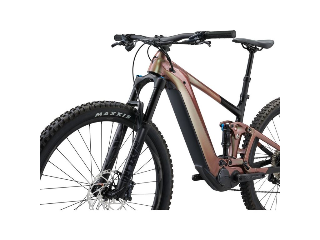 TENTO CELOPRUŽENÝ TRAILOVÝ E-BIKE S ALUMÍNIOVÝM RÁMOM JE OZBROJEN MOTOROM SYNC DRIVE PRO YAMAHA NAJNOVŠEJ GENERÁCIE, KTORÝ MÁ PRI KOMPAKTNÝCH ROZMEROCH VYSOKÝ TOČIVÝ MOMENT A MAXIMÁLNU PODPORU. ODPRUŽENIE MAESTRO POSKYTUJE PLNÝ AKTÍVNY ZDVIH 140 MM A VĎAKA NASTAVITEĽNEJ GEOMETRII SI MÔŽETE KOLO PRISPÔSOBIŤ PODĽA VAŠICH PREFERENCIÍ. HLAVNÉ PREDNOSTI Vysoký výkon a dlhý dojazd Motor SyncDrive Pro Yamaha poskytuje točivý moment 85 Nm a podporu až 400 %. Je vyladený na jazdu v ťažšom teréne – veľmi dobre reaguje na točivý moment od jazdca a vytvára silnú podporu aj pri nízkych rýchlostiach. Integrovaná batéria EnergyPak Smart ponúka vysokú kapacitu 800 Wh (750 Wh u modelu Trance X E+ 3), rýchle nabíjanie zabezpečí nabíjačka Smart Charger. Rám bicykla je navyše pripravený na inštaláciu druhej batérie, ktorá pridá 250 Wh (batéria EnergyPak Plus je ponúkaná samostatne). Pohodlné ovládanie motora Pre komfortné ovládanie motora sú na bicykli dve ovládacie jednotky. Priamo pri rukoväti je nenápadný ovládač RideControl Ergo 3, ktorým môžete prepínať jazdné režimy aj počas jazdy v náročnejšom teréne. Priamo na ráme je ovládač RideControl Go, čo je viacúčelové tlačidlo a farebné LED diódy, ktoré indikujú zvolený jazdný režim a stav batérie. Ďalšie užitočné funkcie (napr. možnosť vyladenia podpory v jednotlivých jazdných režimoch) ponúkne mobilná aplikácia Giant RideControl. Skvelé odpruženie a nastaviteľná geometria Odpruženie Maestro je plne aktívne a vysoko citlivé, jazda v teréne je vďaka tomu príjemnejšia a zábavnejšia. Tento systém tiež eliminuje nechcené pohupovanie pri šliapaní, takže nestrácate energiu a idete plynulejšie, rýchlejšie a s menšou námahou. Horné vahadlo odpruženia má v sebe tzv. flip chip, ktorý slúži na jednoduchú úpravu geometrie bicykla – pozícia Low je vhodná pre rýchly „agresívny“ terén, nastavenie do polohy High vytvára skôr XC-orientovanú jazdnú pozíciu. HYBRIDNÁ TECHNOLÓGIA MOTOR SyncDrive Pro, 85Nm, powered by Yamaha OVLÁDACIA JEDNOTKA RideControl GO integrovaná v TT, RideControl Ergo 3 DISPLEJ ANT+ Bezdrôtový displej kompatibilný BATERIA EnergyPak Smart 800, EnergyPak Plus 250Wh range extender compatible RÁM VEĽKOSŤ S FARBA Messier/Black RÁM ALUXX SL-grade Hliník, pokročilá kovaná kompozitná väzba, 140mm Maestro odpružovací systém, 'Boost' 148x12 UDH zadná osa, kompatibilný s Giant EnergyPak Plus Range Extender VIDLICA Fox 36 Float Rhythm, 150mm zdvih, 44mm offset, EVOL, Grip Damper, Sweep adjust, Boost 110x15QR, e-optimized TLMIČ Fox Float DPS Performance, EVOL Large Volume sleeve, 3-position Lever, 185x52.5mm Trunnion mount, custom tuned KOMPONENTY RÝDÍTKA Giant Contact 35 Trail, 35x780mm GRIPY Giant New trail grip Half-waffle/single lock-on PREDSTAVEC Giant Contact SL 35 SEDLOVKA Giant Contact Switch dropper, remote, 30,9 mm SEDLO Giant Romero E PEDÁLY Flat pedal OSAZENIE ŘAZENÍ Shimano SLX PŘESMYKAČ MRP HD2 co-moulded chain guide PŘEHAZOVAČKA Shimano SLX, 12-speed, Shadow+ BRZDY Shimano Deore, BR-M6120, 4-piston, hydraulic disk, 203mm BRZDOVÉ PÁKY Shimano Deore KAZETA Shimano CS-M6100-12, 10-51T, 12-speed ŘETĚZ KMC e.12 Turbo, EcoProteq, e-bike optimized KLIKY Praxis Wavetm 36T Cold Forged 4130 premium steel Praxis e-Cadet+ custom forged crankarm set (Q-factor=168, S:160, M/L:165, XL:170) KOLA RÁFKY Giant AM 29', Tubeless ready, 30mm inner width NÁBOJE Shimano MT410 Boost, Center-Lock, [F] 110x15 [R] 148x12mm MicroSpline Drive Body Thru-axle DRÁTY Sapim E-Lite [R] Race [F], e-bike optimized PLÁŠTĚ Maxxis Minion DHF 29x2.6' sklápateľné, Tubeless, EXO+, 3C MaxxTerra [F]Maxxis Dissector 29x2.6' sklápateľné, Tubeless, EXO+, 3C MaxxTerra [R] DOPLŇKY Tubeless kit (kvapalina, ventily, páky, manuál, nástroj) PRÍSLUŠENSTVO ZÁMKOVÝ MECHANIZMUS Torx 25 Battery Lock s integrovaným obmedzovačom krútiaceho momentu.