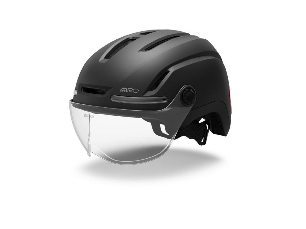 VLASTNOSTI nastavitelný čirý štítek chránící oči, možnost použít i vlastní brýle, reflexní prvky, integrovaná přední i zadní světla, která se změní na odbočovací blinkry po aktivaci z dálkového ovládání na řídítkách, dobíjení pomocí USB-C