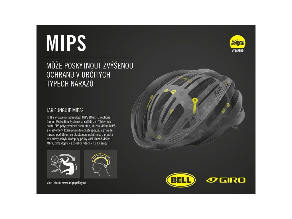 MIPS (Multi-Directional Impact Protection System) poskytuje zvýšenou ochranu proti působení rotačních sil na hlavu. Více na www.MIPSprilby.cz
