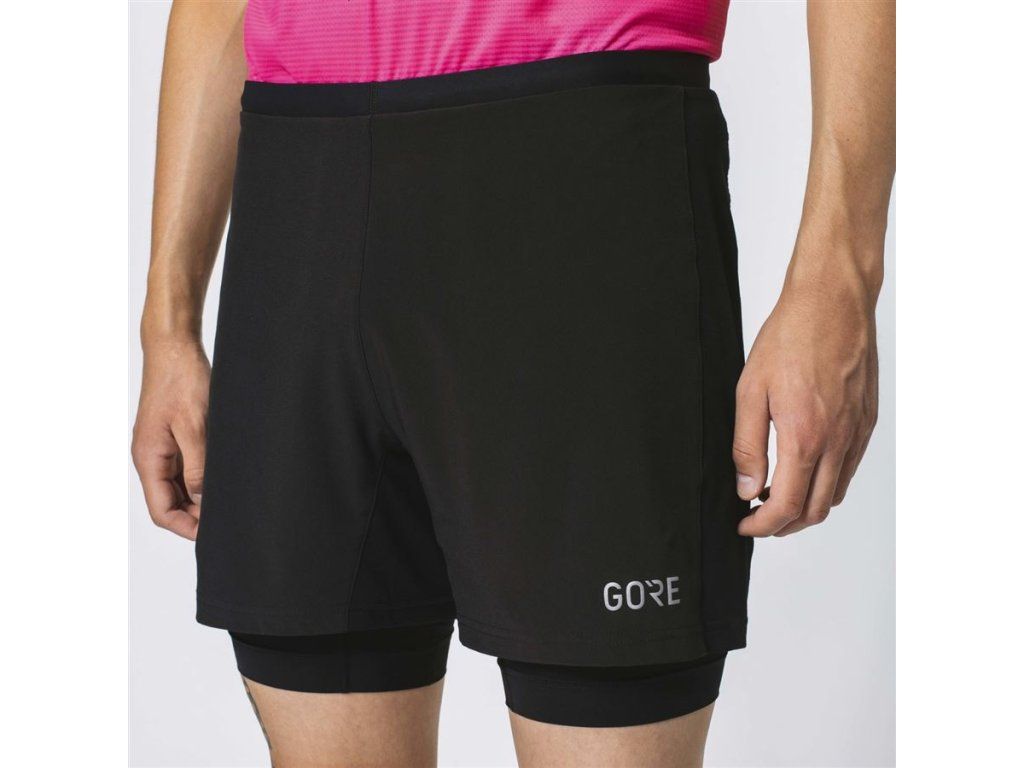 Šortky R5 2v1 kombinují elastickou vnitřní vrstvu a volné, lehoučké běžecké kraťasy.