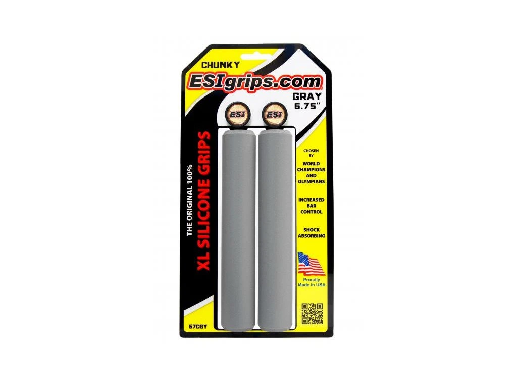 Extra dĺžka, rovnaký komfortŠpičkové gripy ESI Chunky teraz vo verzii XL – s predĺženou dĺžkou 17 cm (6,75") sú ideálne pre širšie riadidlá, netradičné úchopy alebo elektrobicykle. Poskytujú rovnaké tlmenie, komfort a spoľahlivý úchop ako klasický model.Bezpečný a pohodlný úchopVyrobené zo 100 % silikónu – gripy perfektne sedia v ruke, výborne tlmia otrasy a zabezpečujú rovnaký úchop za sucha aj za mokra. Nešmýkajú sa, nelepia a znižujú znecitlivenie rúk a únavu paží aj pri dlhých jazdách.Odolné a ľahko udržiavateľnéGripy sú odolné voči UV žiareniu, nemenia farbu ani tvar a spoľahlivo držia na riadidlách bez možnosti pretáčania. Vďaka jednoduchej údržbe sú ideálne do každého počasia a náročných podmienok.Technické špecifikácie: Dĺžka: 17 cm Priemer: 32 mm Farba: čierna Materiál: 100 % silikón Odolné voči UV žiareniu Výborná priľnavosť bez pretáčania Jednoduchá údržba