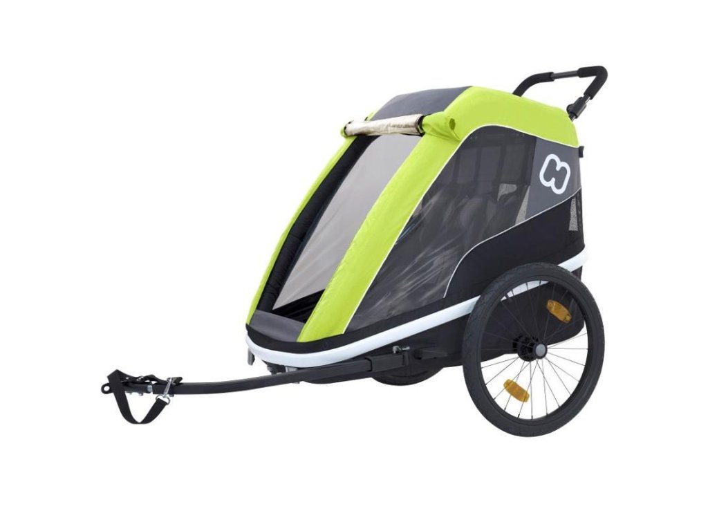 Všestranný detský vozík s odnímateľným ramenom za bicykel, dvojmiestnyPohodlný vďaka odpruženiu