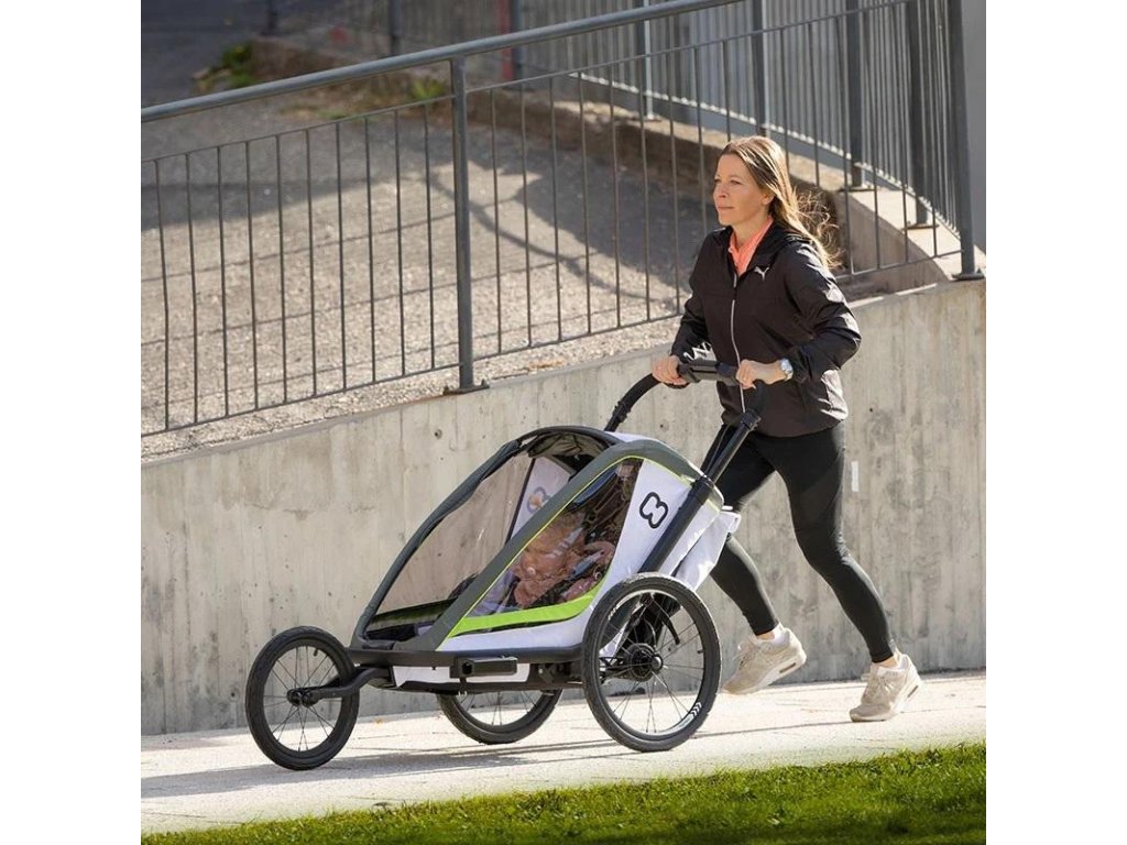 Zoznámte svoje deti s aktívnym životným štýlom čo najskôrCyklistický vozík Hamax Cocoon/Breeze je navrhnutý na multifunkčné použitie a možno ho ľahko zmeniť na kočík – alebo vozík na behanie!16” pevné predné koleso na behanie zaisťuje dieťaťu stabilnú a pohodlnú jazdu. Koleso sa jednoducho pripevňuje a pomocou integrovanej brzdy na riadidlách si môžete nastaviť rýchlosť pri zjazde z kopca.