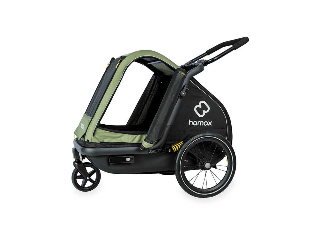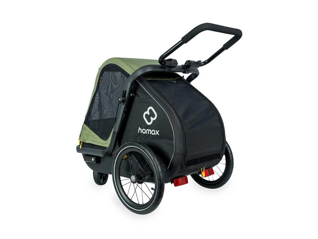 Nízke ťažisko pre stabilituInovatívne skladanieNastaviteľné odpruženiePohodlný a umývateľný interiérRučná brzdaBezpečnostné háčiky na vodítkoĽahko použiteľný záves na bicykelUzamykateľné rameno na bicykelInteligentné uloženie ramena bicyklaVrátane súpravy kočíka s výškovo nastaviteľnými riadidlamiTestované a schválené podľa EN15918.Úložný priestor na extra výbavuReflexné lemy a odrazky pre bezpečnosťPríves je možné použiť aj na prepravu nákladu.Vnútorný priestor: 78 cm (dĺžka) x 46 cm (šírka) x 67 cm (výška).