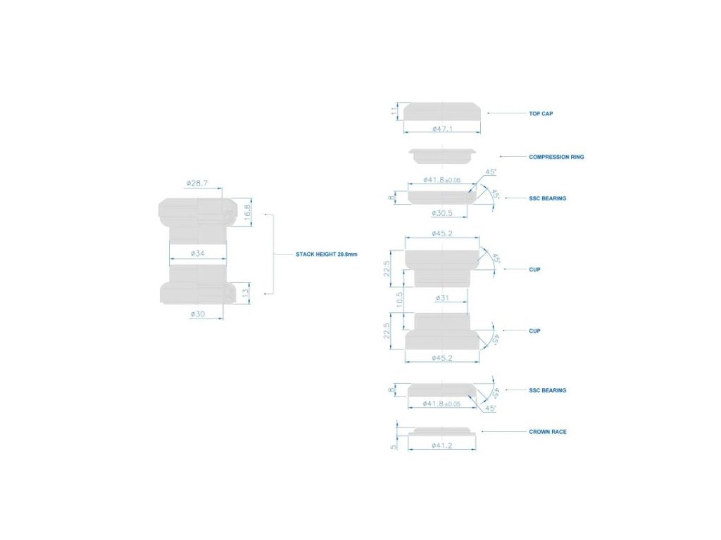 Náhlavná súprava Ritchey External Cup EC Threadless má menšie horné ložisko pre úsporu hmotnosti, zatiaľ čo ľahké, presne opracované hliníkové misky sú hlboké pre pevné vloženie.Materiál: oceľVýška stohu: 29,8 mmVýška stohu horná: 16,8 mmSpodná výška stohu: 13 mmPriemer hlavovej trubky: 34 mmSHIS horný EC34/28,6 (1 ⅛”)SHIS nižšia EC34/30 (1 ⅛”)Ložisková polokazeta (SSC)Hmotnosť: 146gFarba: čiernaBezzávitové