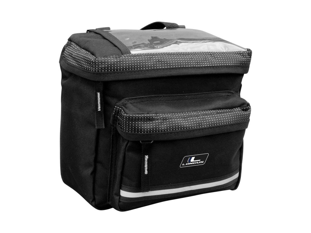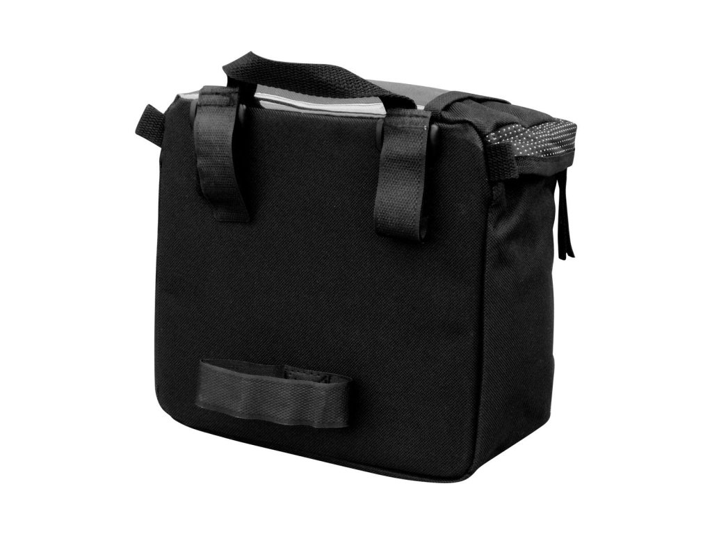 Stredne veľká kapsa na riadítka s vystuženou zadnou časťou a priehľadným priestorom na mapu v hornej časti, aby ste mali cieľ jazdy stále pod kontrolou. Veľký vnútorný objem a prídavné predné vrecko umožnia uložiť veľké množstvo potrebných vecí na dlhé výlety. Reflexné prvky zvyšujú bezpečnosť za zníženej viditeľnosti. Upnutie na riadítka zabezpečujú dostatočne dlhé Velcro pásky, ktoré umožňujú jednoduchú a rýchlu inštaláciu alebo demontáž kapsičky. Kapsička môže slúžiť aj ako príručná taška, vďaka rúčke v hornej časti. Prívesky na bežcoch zipsov uľahčujú ich zapínanie. Vo vnútri nájdete priehradku na doklady a prívesok na kľúče. Kapsička je vyrobená z odolného a húževnatého Polyesteru 600D, ktorý zabezpečuje dlhú životnosť aj pri častom používaní.