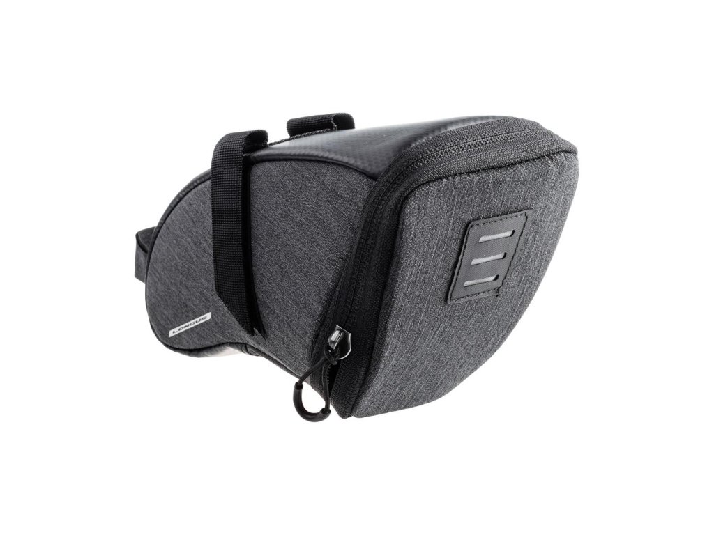 Podsedlová kapsička väčších rozmerov s kvalitným polstrovaním a podšitou konštrukciou, vyrobená v elegantnom GRANIT prevedení. Obvodové steny kapsičky sú vystužené a kapsička drží tvar aj keď nie je plná. Exponované časti sú vyrobené z nepremokavých materiálov. Zips otvára veľký otvor, ktorý umožňuje pohodlnú manipuláciu aj s väčšími predmetmi, prívesok na bežci zipsu zase výrazne uľahčuje časté otváranie a zatváranie. Vnútorné sieťové vrecko je ideálne na odloženie hotovosti alebo drobných predmetov. K vášmu bicyklu je pripevnená pomocou 3 pásov na suchý zips (dva pod sedlom a jeden okolo sedlovky). Kapsička je v zadnej časti vybavená úchytom na svetlo a na všetkých stranách je vybavená reflexnými prvkami pre vyššiu bezpečnosť.
