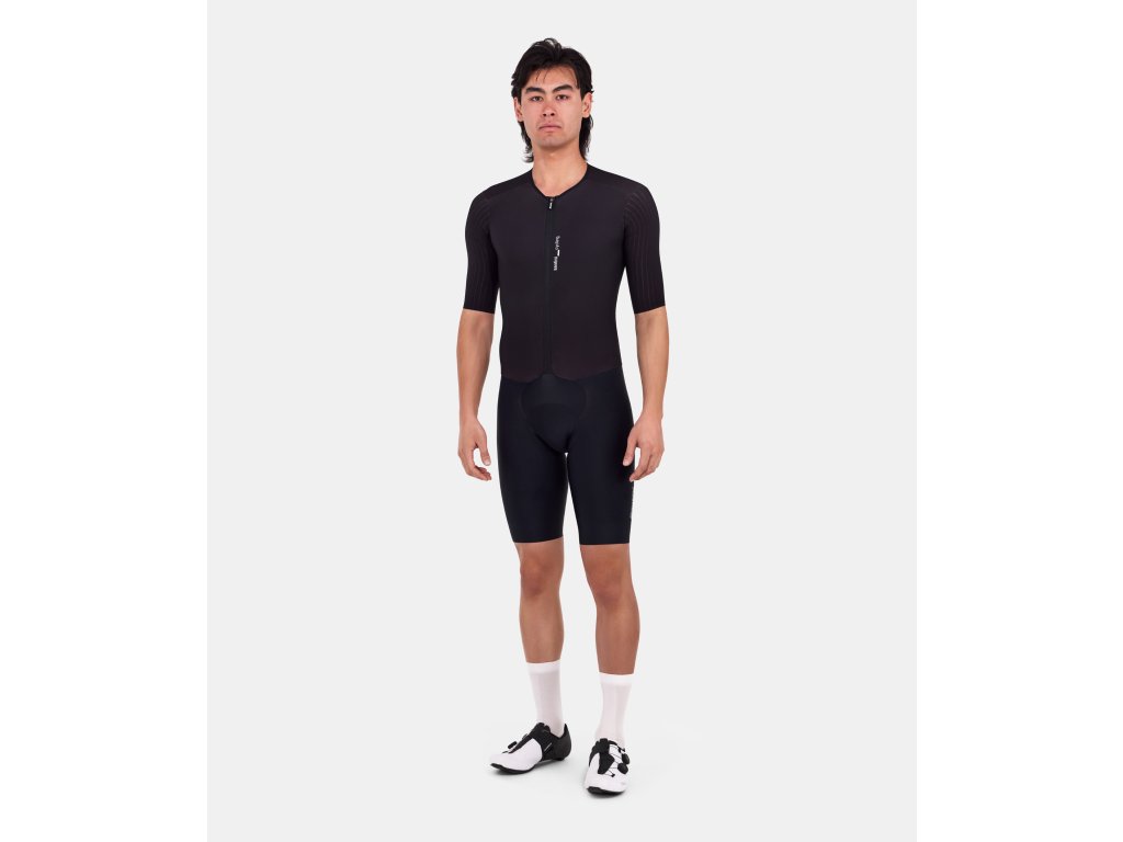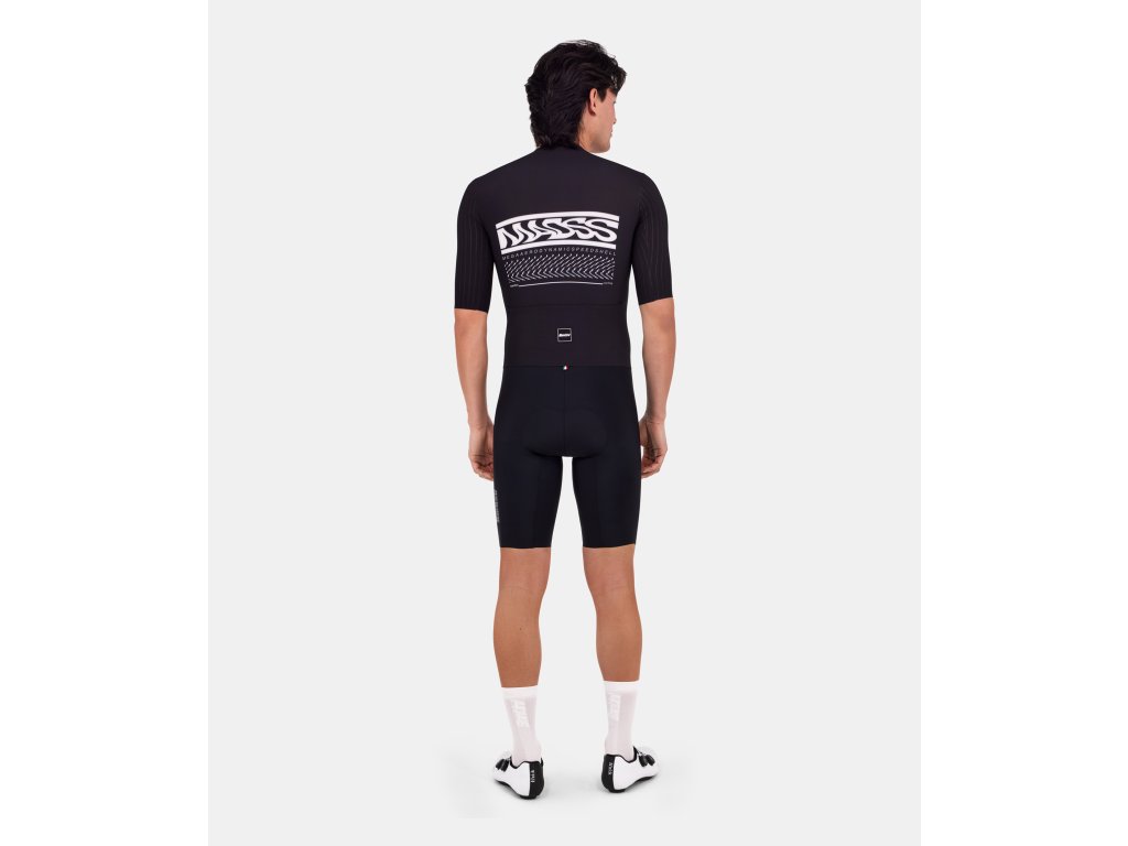 SANTINI Madss (MEGA AERODYNAMIC SPEED SHELL) je profesionální závodní kombinéza, která přináší bezkonkurenční aerodynamický výkon. Vyrobena z lehké a prodyšné Lycra tkaniny, která zajišťuje příjemný pocit svěžesti a dokonale přiléhá k tělu jako druhá kůže. Nízký límec a aerodynamické rukávy s čistě střiženými okraji zajišťují přesné a stabilní usazení.Spodní část kombinézy je vyrobena z pružného materiálu Thunderbike s kompresní technologií, která poskytuje střední oporu bez omezení pohybu. Prodloužené nohavice s vnitřním silikonem a hrubě střiženými okraji zvyšují pohodlí a aerodynamickou efektivitu.Vložka C3 s gelovými antišokovými vložkami a ergonomickým 3D povrchem poskytuje skvělou ochranu při dlouhých a náročných závodech. Praktická trojitá kapsa na zádech přináší dostatek prostoru pro vše potřebné.