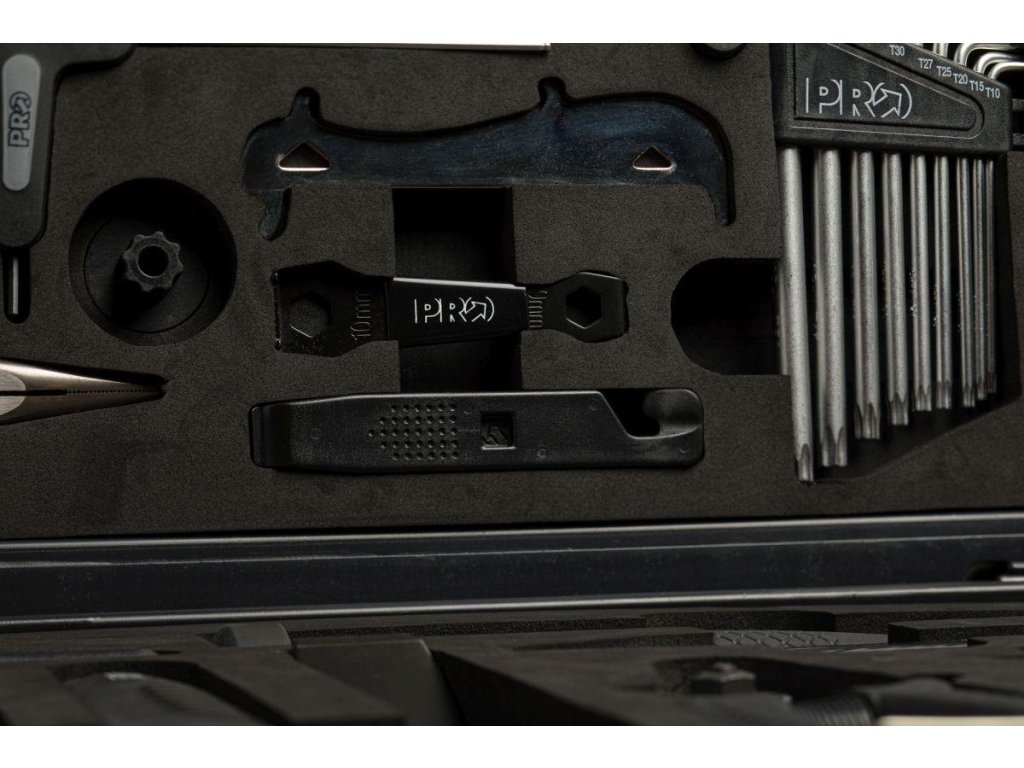 Nôž, kliešte na rýchlospojky, reťazový nitovač, monterpáčky na plášte, kľúč na pedále 15 mm.