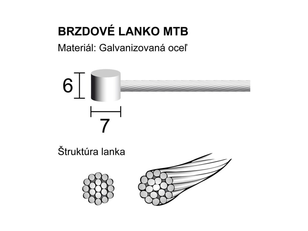 Brzdové lanko s MTB koncovkou pre horské bicykle. Je viazané z 19 tenkých laniek z galvanizovanej ocele. Vďaka kvalitnému výrobnému procesu lanko poskytuje excelentnú odolnosť v ťahu pri brzdení. Balenie 100ks v boxe.