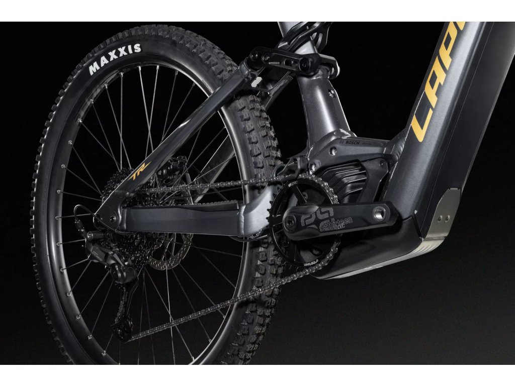 Celoodpružený LAPIERRE Overvolt TR 6.7 ponúka hliníkový rám s modernou trialovou geometriou, komponenty odpruženia Rock Shox a LAPIERRE Shock, 29-palcové kolesá, motor Bosch Performance line CX a batériu s kapacitou neuveriteľných 750 Wh.