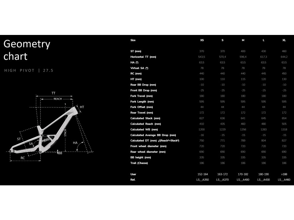 Nové Spicy CF možno zhrnúť nasledovne:• 1 rám - 2 možnosti použitia: Enduro závody alebo Bike Park• 2 kinematika: High Pivot (HP) alebo Low Pivot (LP)• 4 konfigurácia: HP alebo LP, 29” alebo MulletPrečo dve rôzne polohy zadnej stavby?Poloha upevnenia zadnej stavby ovplyvňuje kinematiku a trajektóriu zadného kolesa pri kompresii. Pri rovnakom náraze sa zadné koleso v polohe High Pivot pohybuje dozadu, takže do prekážky 'narazí' menej. Pomocná reťazová kladka je potom nutná na obmedzenie spätného rázu do pedálov – tzv. kickback.V polohe Low Pivot sa zadná trojuholníková časť pohybuje menej dozadu. Umožňuje jazdcovi vrátiť sa k obvyklejšej konfigurácii, bez kladky a s väčšou účinnosťou šliapania.NASLEDOVANIE EVOLÚCIEEnduro závody sú čím ďalej náročnejšie a Lapierre enduro jazdci z tímu Lapierre Zipp Collective pomáhali s vývojom nového rámu. Enduro etapy sa skladajú z náročných zjazdových časti a tiež z častí so zameraním na šliapanie, ale očakávania jazdcov sú rovnaké: podávať dobré výkony a užívať si jazdu.POLOHA HIGH PIVOT• Zlepšená stabilita• Odpruženie orientované na zjazd• Optimalizované pre Enduro závody s väčším podielom zjazdových častíVPLYV NA ODDPRUŽENIEVYSOKÁ HODNOTA ANTISQUAT - Minimalizuje pokles odpruženia pri zrýchleníVYSOKÁ HODNOTA ANTIRISIE - Poskytuje väčšiu stabilitu pri brzdení POLOHA LOW PIVOT• Zlepšená dynamika• Univerzálne odpruženie• Optimalizované pre Enduro závody s väčším podielom šliapaniaVPLYV NA ODDPRUŽENIENÍZKA HODNOTA ANTISQUATU - Väčšia efektivita šliapaniaNÍZKA HODNOTA ANTIRISIE - Odpruženie, ktoré voľne funguje pri brzdení a je pohodlnejšie pri brzdení GEOMETRIAGeometria nového Spicy CF sa oproti predchádzajúcej generácii výrazne vyvinula, najmä v štyroch kľúčových oblastiach:UHOL SEDLOVEJ TRUBKY – Rovnako ako u všetkých našich posledných modelov bol uhol sedla narovnaný na 78°, čo prenáša ťažisko jazdca dopredu a zlepšuje polohu pre šliapanie do kopca.REACH – Obvyklým dôsledkom strmšieho uhla sedla je kratšia horná trubka, ktorá je čiastočne kompenzovaná dlhším dosahom, aby sa udržala hmotnosť na prednej časti bicykla a zachovalo sa dobré rozloženie hmotnosti. To je tiež výhodné pre stabilitu a jednoduchosť použitia pri vysokých rýchlostiach.UHOL HLAVOVEJ TRUBKY – Uhol hlavovej trubky sleduje vývoj zdvihu predného kolesa (+10 mm) s otvorenejším uhlom, ktorý sa prispôsobuje 180 mm vidlici. Táto požiadavka prišla aj od jazdcov tímu Lapierre Zipp Collective, ktorí hľadali väčšiu stabilitu a presnosť pre rýchle zákruty a zjazdy.VÝŠKA BB (STREDU) – cieľom bolo nájsť správnu rovnováhu medzi čo najnižšou svetlou výškou pre čistý výkon a potrebou enduro horského bicykla vyhnúť sa kontaktu so zemou, v závislosti od drsnosti terénu. Nakoniec je len 3 mm vyššia, ale kompenzuje extra zdvih.Pocit ľahkosti nie je len otázkou hmotnosti, ale je z veľkej časti diktovaný usporiadaním karbónových vlákien a konceptom Gravity Logic Project. Tlmič je teraz umiestnený ešte nižšie a uprostred bicykla, zvyšuje pocit neutrality a rovnováhy, najmä pri skokoch. Integrovaná schránka na náradie (s ochranným kitom) v spodnej časti dolnej rámovej trubky posilňuje GLP koncept s nízkym ťažiskom.Skáčte vysoko a bez obmedzeníOd roku 2007, kedy bol uvedený prvý model Spicy, je cieľom spoločnosti Lapierre vytvoriť bicykel určený pre enduro a závody. Horský bicykel, ktorý je rýchly, živý, presný a rezolútny pri zjazdoch, ale zároveň je v zhode s filozofiou spoločnosti Lapierre: Jazdiť dobre, aby bolo možné dosiahnuť ďalší zjazd čo najrýchlejšie a najľahšie.