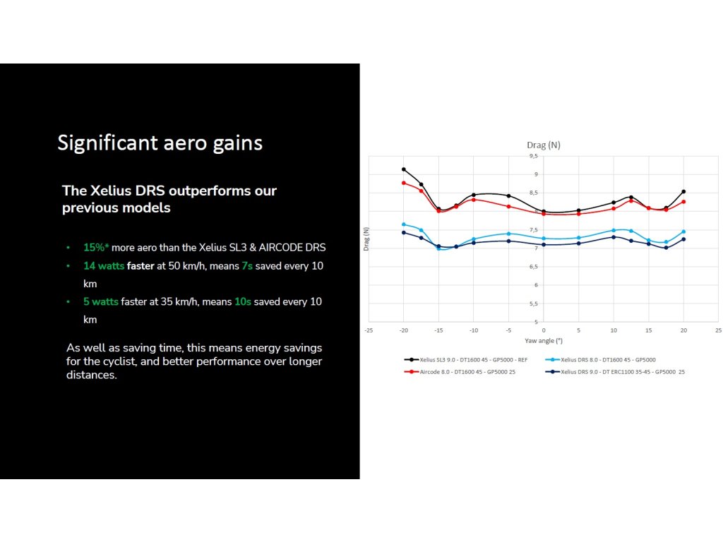 Uvoľnite čistú radosť z jazdy po otvorenej ceste so štvrtou generáciou cestného bicykla LAPIERRE, ktorý je starostlivo vyvinutý pre rýchlosť a výkon. Vylepšený aerodynamický dizajn reže vzduch ako nikdy predtým, a každé šliapnutie vás ženie rýchlejšie a hladšie vpred. Tento bicykel nie je len vyrobený pre jazdu; je to oslava vášne a neúnavného hľadania dokonalosti už viac ako 75 rokov trvania značky LAPIERRE a každá ďalšia jazda s ním je šancou cítiť sa nažive a slobodne.Cestné bicykle z kategórie AERO sa stále viac stávajú univerzálnym strojom a postupne vytláčajú PERFORMANCE bicykle. A práve aj nový XELIUS DRS zjednocuje a nahrádza v kolekcii LAPIERRE tieto dva segmenty. Dáta jasne ukazujú, že odpor vzduchu je kľúčový, a práve táto úspora napomáha jazdcovi sa zlepšovať a šetriť cenné sekundy, ktoré rozhodujú preteky.AerodynamikaAerodynamika rámu zohráva kľúčovú úlohu a stojí za ňou podrobné testovanie v aerodynamickom tuneli a v počítačových simuláciách. Vďaka tomu sa podarilo znížiť odpor vzduchu samotného rámu o 16 % v porovnaní s predošlou generáciou Xelius SL a táto nezanedbateľná výhoda prináša jazdcovi úsporu 15,8 W pri rýchlosti 50 km/h.Karbónový rám3D Tubular™ To je unikátne a logické napojenie sedlových vzpier na hornú rámovú trubku ďaleko pred sedlovkou. Ponecháva práve sedlovú trubku po celej svojej dĺžke voľnú a schopnú lepšie tlmiť vibrácie a dodávať jazdcovi potrebný komfort.V ponuke sú dva druhy rámu, ktoré sa nelíšia tvarom ale iba voľbou karbónových vlákien a množstvom živice. Elitný rám s označením UD SLI TEAM LIGHT s hmotnosťou 790 g (veľkosť M pred lakovaním) je výsadou top modelov 10.0 a 11.0 (SE). Hmotnosť štandardného rámu je 908 g.GeometriaNajvýraznejšími zmenami v geometrii je o 0,5° kolmejšia sedlovka (74°). Kratšia hlavová trubka s nižším odporom vzduchu a dlhší Reach pre viac športový posed zameraný na výkon. Do ponuky tiež pribudla veľkosť XXL pre jazdcov nad 195 cm.Kokpit a komponentyNajvyššie modely s označením 8.0 - 11.0 dostali do výbavy karbónové kolesá DT SWISS a úplne nové LAPIERRE combo (325 g). Súčasťou všetkých modelov je karbónová aero sedlovka s nulovým offsetom.