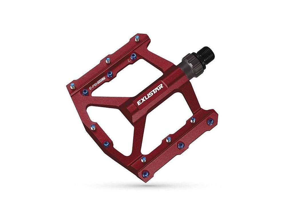 Nízkoprofilové pedále Exustar E-PB557 sú vyrobené z eloxovaného hliníka s CrMo osou a tenkým ložiskovým systémom (LSL). Pre lepší kontakt s topánkou sú pedále na oboch stranách vybavené protišmykovými vymeniteľnými pinmi.