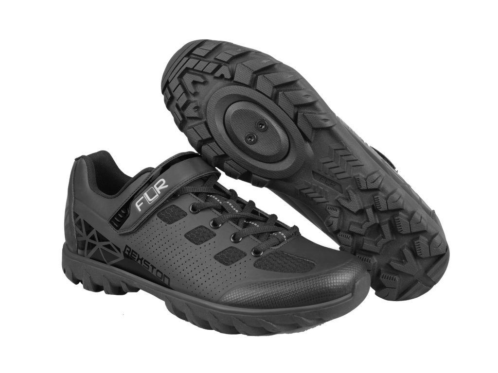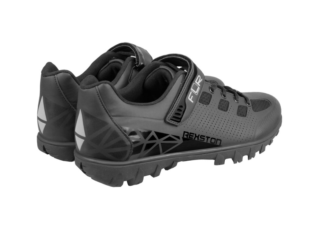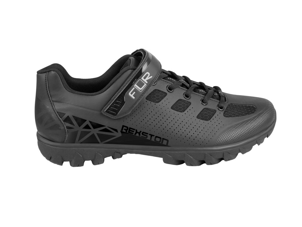 Všestranný, cenovo dostupný model vyššej úrovne Rexston, ktorý je stvorený do akéhokoľvek terénu, ponúka vynikajúci výkon na ceste aj mimo nej. Táto topánka má vysoko kvalitný syntetický zvršok, otvory zo sieťoviny na ventiláciu a dodatočnú ochranu vďaka zosilnenému prstovému boxu. Klasické šnurovacie zapínanie a jeden pásik na suchý zips ponúka bezpečné a nastaviteľné uchytenie.Nová podrážka AT200 bola vytvorená špeciálne pre model Rexston, aby pomohla svojmu majiteľovi dosiahnuť maximálny výkon pri šliapaní na bicykli i pohodlie mimo sedla. Zosilnená nylonová doska zaisťuje silný prenos sily do pedálov s podpornou medzipodrážkou EVA. Plný gumový dezén STKgrip™ poskytuje vynikajúcu priľnavosť, trakciu a stabilitu v kamenistom alebo mokrom teréne. Na dokonalú ochranu kufrov slúži kruhová bariéra, ktorá chráni túto oblasť proti opotrebeniu počas dlhodobého používania.Hmotnosť 413 g