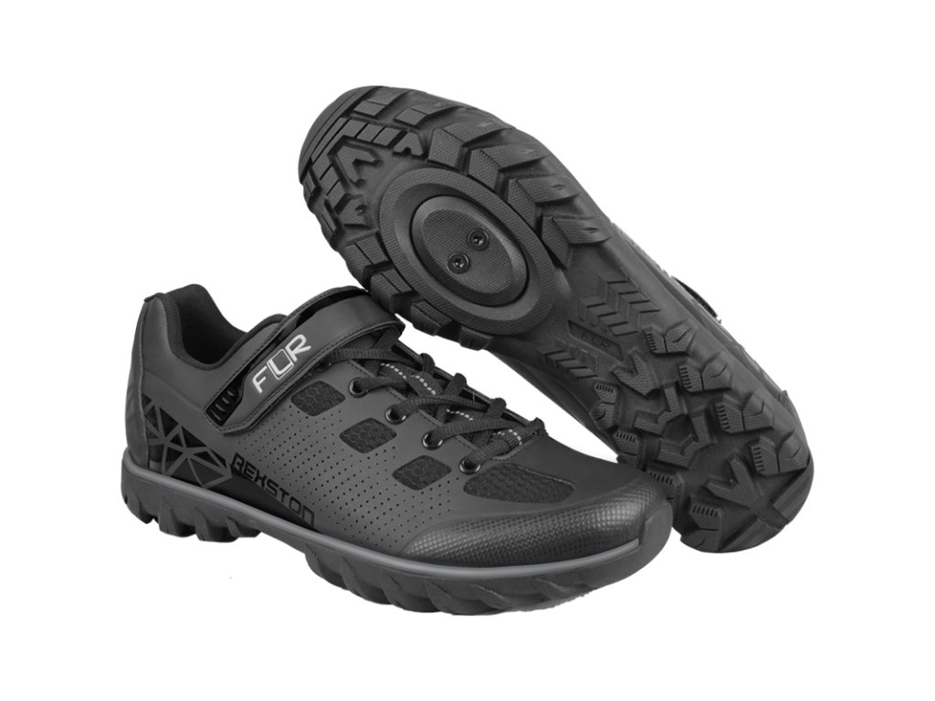 Všestranný, cenovo dostupný model vyššej úrovne Rexston, ktorý je stvorený do akéhokoľvek terénu, ponúka vynikajúci výkon na ceste aj mimo nej. Táto topánka má vysoko kvalitný syntetický zvršok, otvory zo sieťoviny na ventiláciu a dodatočnú ochranu vďaka zosilnenému prstovému boxu. Klasické šnurovacie zapínanie a jeden pásik na suchý zips ponúka bezpečné a nastaviteľné uchytenie.Nová podrážka AT200 bola vytvorená špeciálne pre model Rexston, aby pomohla svojmu majiteľovi dosiahnuť maximálny výkon pri šliapaní na bicykli i pohodlie mimo sedla. Zosilnená nylonová doska zaisťuje silný prenos sily do pedálov s podpornou medzipodrážkou EVA. Plný gumový dezén STKgrip™ poskytuje vynikajúcu priľnavosť, trakciu a stabilitu v kamenistom alebo mokrom teréne. Na dokonalú ochranu kufrov slúži kruhová bariéra, ktorá chráni túto oblasť proti opotrebeniu počas dlhodobého používania.Hmotnosť 413 g