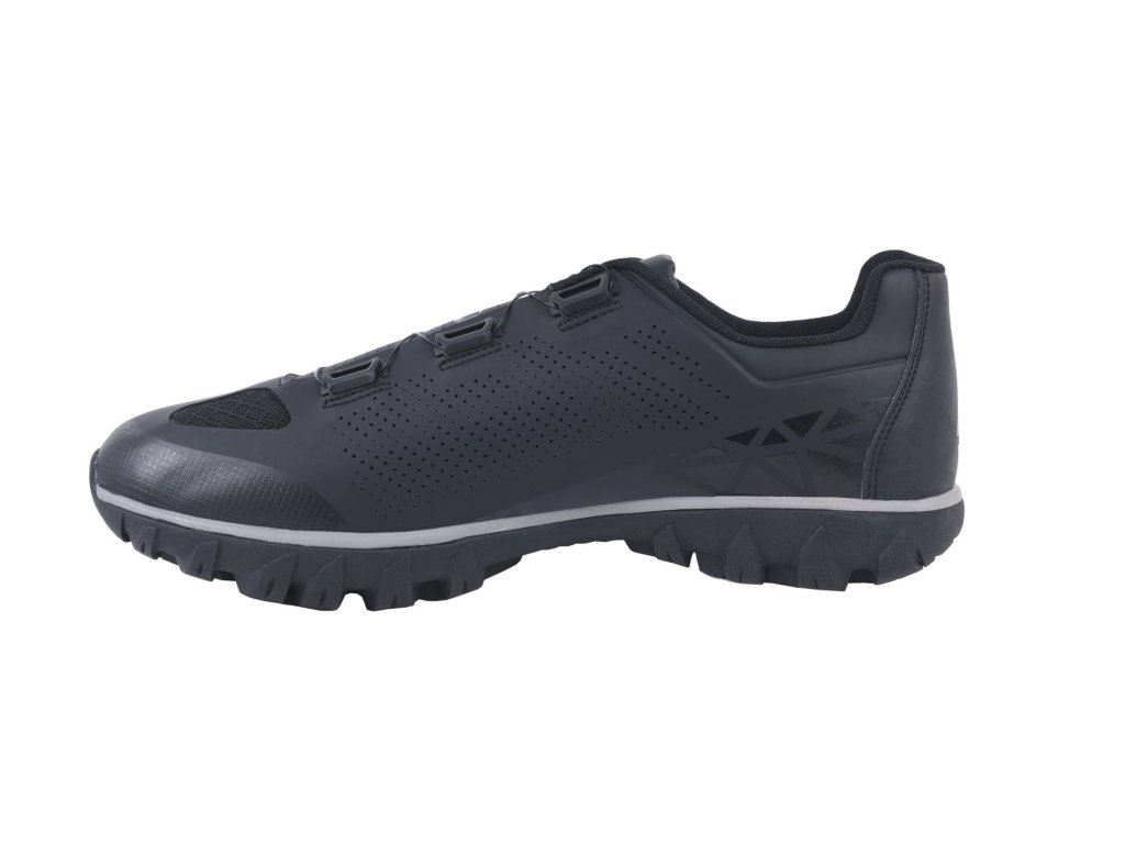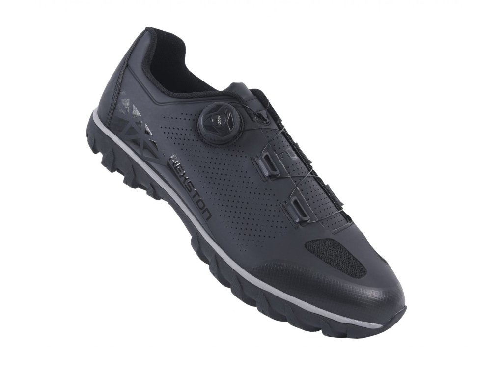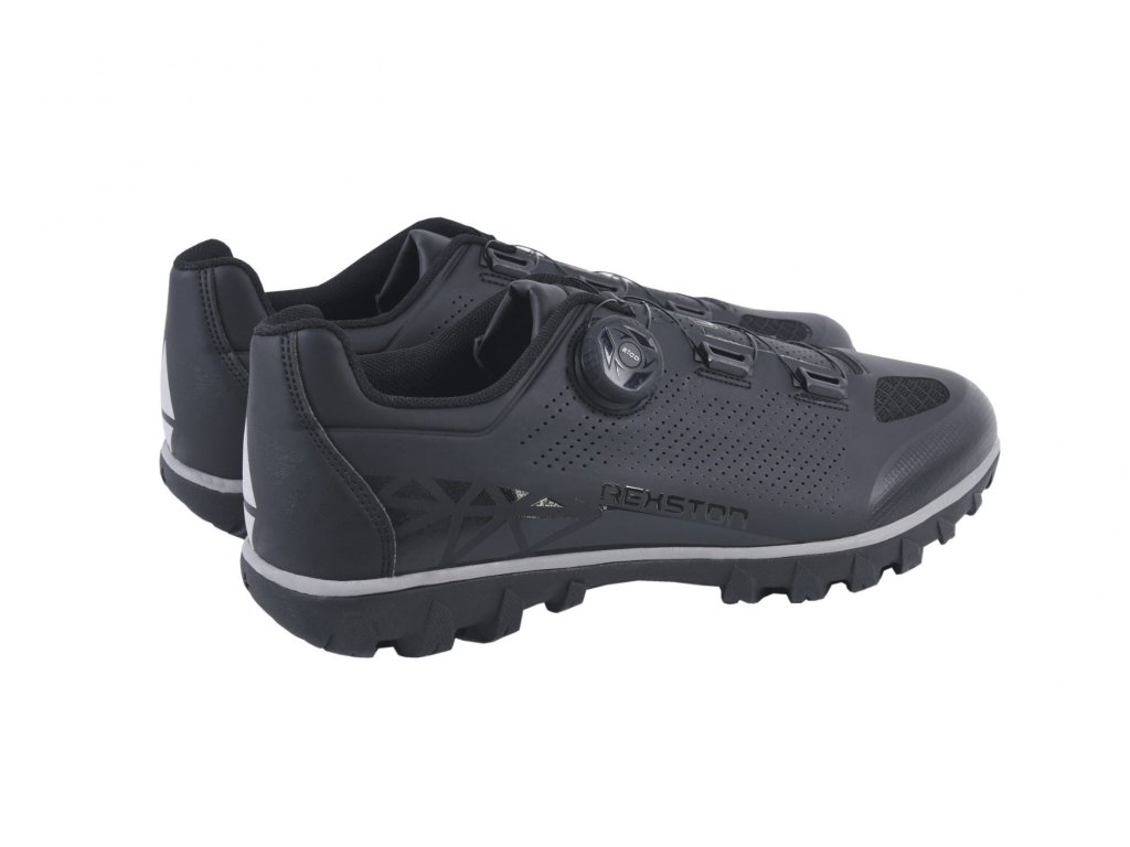 Všestranný, cenovo dostupný model vyššej úrovne Rexston, ktorý je stvorený do akéhokoľvek terénu, ponúka vynikajúci výkon na ceste aj mimo nej. Táto topánka má vysoko kvalitný syntetický zvršok, otvory zo sieťoviny na ventiláciu a dodatočnú ochranu vďaka zosilnenému prstovému boxu. Klasické šnurovacie zapínanie a jeden pásik na suchý zips ponúka bezpečné a nastaviteľné uchytenie.Nová podrážka AT200 bola vytvorená špeciálne pre model Rexston, aby pomohla svojmu majiteľovi dosiahnuť maximálny výkon pri šliapaní na bicykli i pohodlie mimo sedla. Zosilnená nylonová doska zaisťuje silný prenos sily do pedálov s podpornou medzipodrážkou EVA. Plný gumový dezén STKgrip™ poskytuje vynikajúcu priľnavosť, trakciu a stabilitu v kamenistom alebo mokrom teréne. Na dokonalú ochranu kufrov slúži kruhová bariéra, ktorá chráni túto oblasť proti opotrebeniu počas dlhodobého používania.Hmotnosť 413 g
