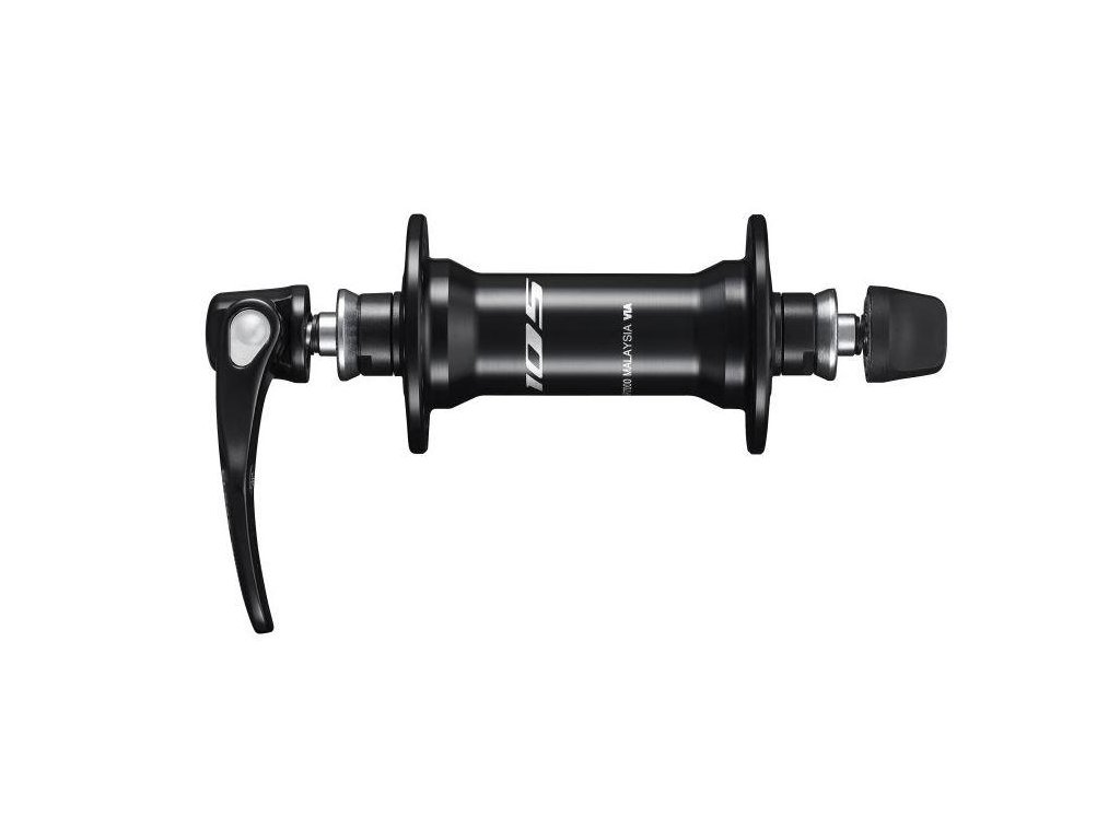Náboj predný 105 R7000. Cestný náboj s 32 otvormi pre špice, čiernej farby, OLD 100mm. Klasická konštrukcia s kónusmi zabezpečí hladký chod náboja a jednoduchý servis. Vrátane rýchloupináku.