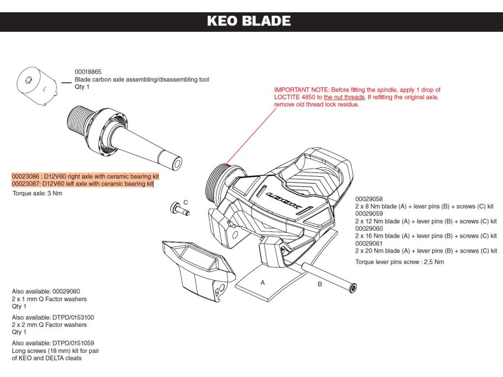 Náhradní osa LOOK Titan Keo Blade Ceramic ložiska - Pravá