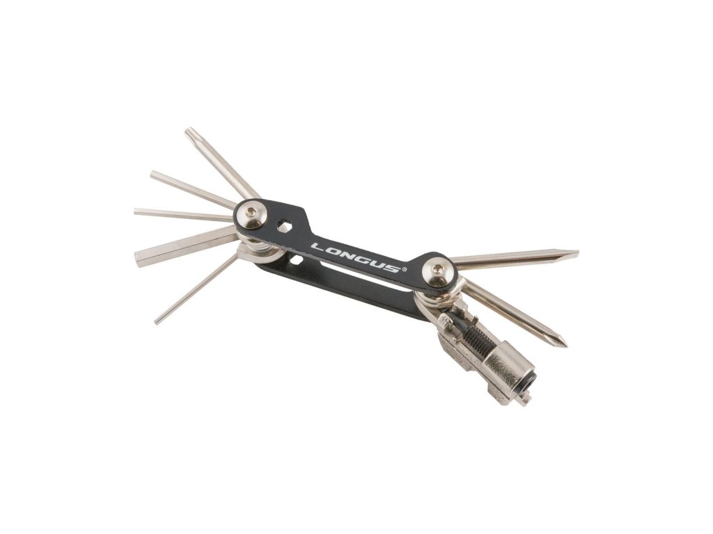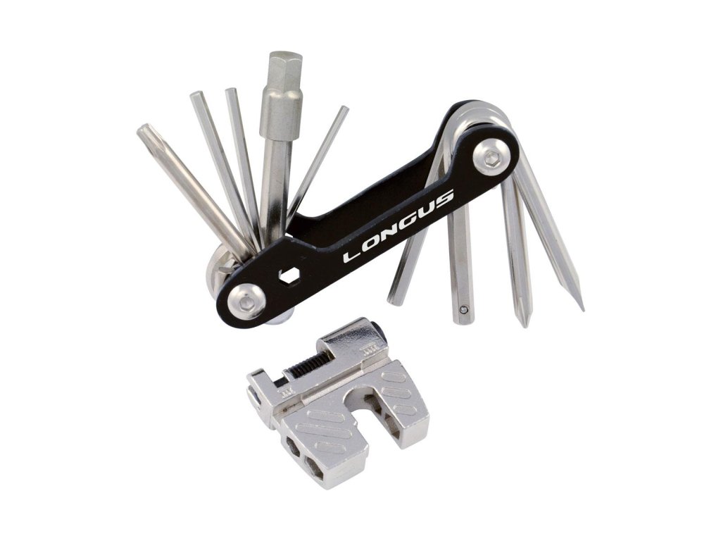 Sada náradia LONG 20, s ktorou si hravo poradíte pri takmer každej oprave bicykla. Obsahuje 20 druhov nástrojov, nitovač, plochý a krížový skrutkovač, šesťhranné kľúče 2; 2,5; 3; 4; 5; 6; 8; T25, 4 centrovacie kľúče rôznych veľkostí, maticové kľúče 5; 6; 8; 9; 10.