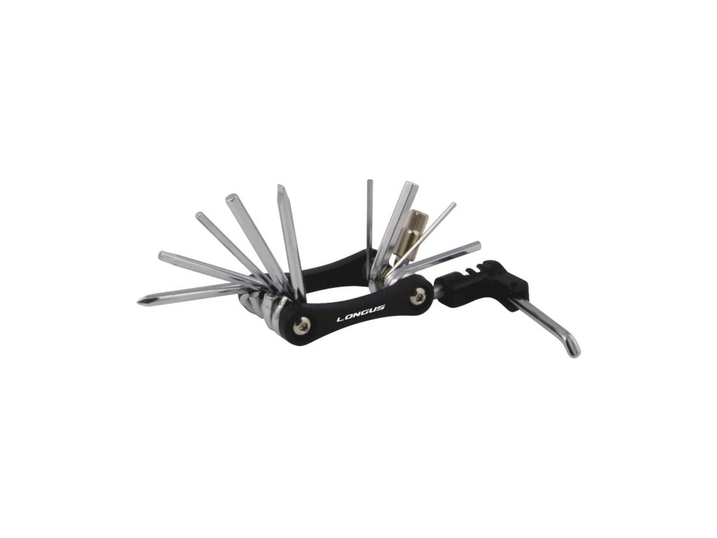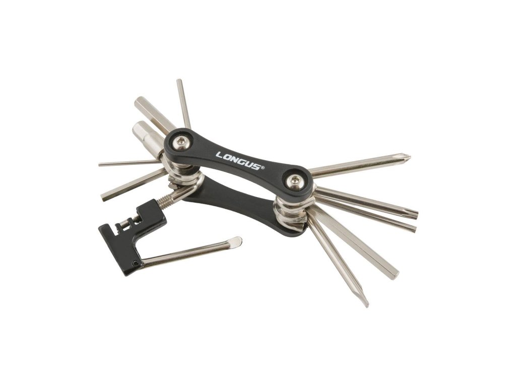 Kompaktná sada náradia POLY 12, ktorá obsahuje všetko potrebné pre opravu, či nastavenie bicykla. Sada obsahuj šesťhran 2; 2,5; 3; 4; 5; ;6; 8; plochý a krížový skrutkovač, T25, centrovací kľúč a nitovač reťaze.