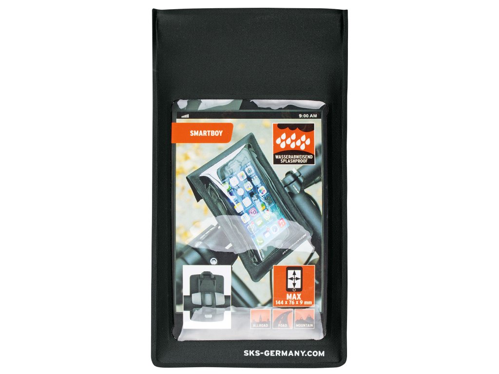 Samostatný nepremokavý obal na smartphone, ktorý sa dá použiť na držiak Smartboy. Priehľadná fólia, cez ktorú ide telefón používať.Maximálna veľkosť telefónu: 144x76x9 mm