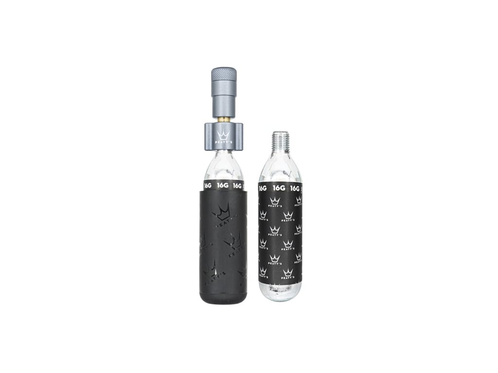 Sada CO2 hlavičky a dvoch CO2 bombičiek. Hlavička je vyrobená z hliníkovej zliatiny 6061, CNC obrábaná a jej povrch je anodizovaný. Môžete si vybrať medzi sadou s bombičkami 16 g alebo 25 g. V oboch prípadoch je v ponuke 12 farebných prevedení. Unikátny patentovaný tvar hlavičky zaručuje rýchlu a pohodlnú aplikáciu. Na nahustenie stačí iba naraziť na ventilek a stlačiť. Kompatibilná iba s galuskovým ventílom. Silikónový návlek na bombičku s uzavretým dnom chráni pri aplikácii ruky pred omrznutím. Balenie obsahuje hlavičku, dve CO2 bombičky a ochranný silikónový návlek.