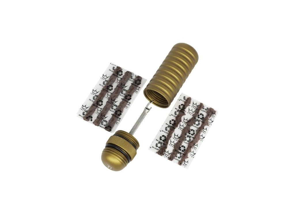Sada na opravu bezdušových plášťov, ktorá sa skladá z hrotu s unikátnou konštrukciou, 3 uzlov o priemere 1,5 mm a 3 uzlov o priemere 3 mm. To všetko v praktickom a štýlovom prevedení, dostupné v 12 farebných variantoch. Telo je vyrobené z anodizovanej hliníkovej zliatiny, hrot potom z vysoko kvalitnej nerezovej ocele 316. Tvar hrotu bol navrhnutý tak, aby spoľahlivo dopravil uzol cez plášť, nevytiahol ho späť a v neposlednom rade zbytočne nezväčšil veľkosť defektu. Dostupné v 12 farebných prevedeniach, ktoré zodpovedajú produktom Chris King. Rýchla a jednoduchá aplikácia vďaka unikátnej konštrukcii hrotu. Vďaka patentovanému tvaru hrotu zostáva uzol po aplikácii na svojom mieste a nedochádza k jeho nechcenému vyťahovaniu pri vybratí hrotu. Úzky profil hrotu zbytočne nezväčšuje otvor v plášti pri aplikácii uzla. Hrot je vyrobený z nerezovej ocele 316. Telo je vyrobené z hliníkovej zliatiny 6061 a povrch je anodizovaný. Rukoväť zaručuje pevný úchop pri aplikácii. Celý set je vďaka konštrukcii tela a použitým tesniacim krúžkom vodoodolný.