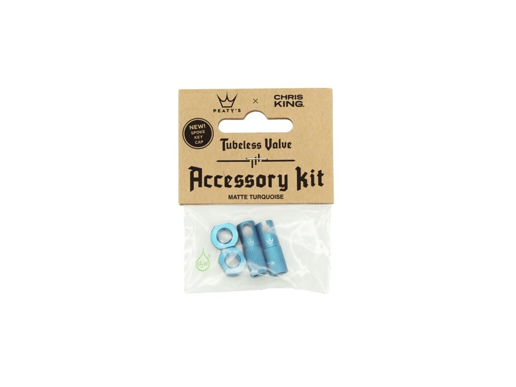 Nech už ste stratili čapicu ventilku, alebo túžite po nestandardnej farebnej kombinácii, sada Accessory Kit* bude pre vás vítaným riešením. Obsah balenia: 1x centrovací kľúč pre štandardný 3,4mm nipple 1x kľúč na vyšroubovanie vnútorného ventilku 2x poistná matica * Kompatibilné so všetkými bezdušovými ventilmi Peaty’s.