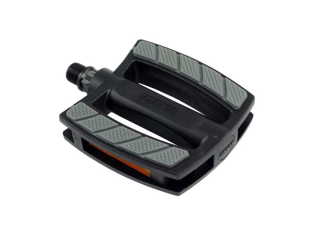 Platformové plastové pedále EBIKE PP sú svojou konštrukciou predurčené pre mestské bicykle a elektrobicykle. Vyrobené sú z odolného a pevného polypropylénu (PP) s telom z jedného kusa. Oska pedálu z bórovej ocele s rozmerom #2 9/16" a dvomi plochami pre pedálový kľúč je položená na odľahčených nastaviteľných guľôčkových ložiskách. Styčné plochy pedálu majú protisklzovú vrstvou z termoplastickej gumy. Pedále sú vybavené vsadenými odrazkami po oboch stranách. Pedále sú certifikované pre nemecký trh.