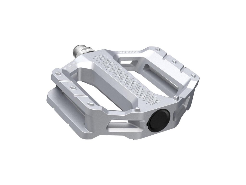Typ: MTB, Celková váha balenia: 711g, Použitie: MTB/Treking, obojstranné, Flat, strieborné, Materiál: telo pedálu (hliník), oska (chróm+oceľ)