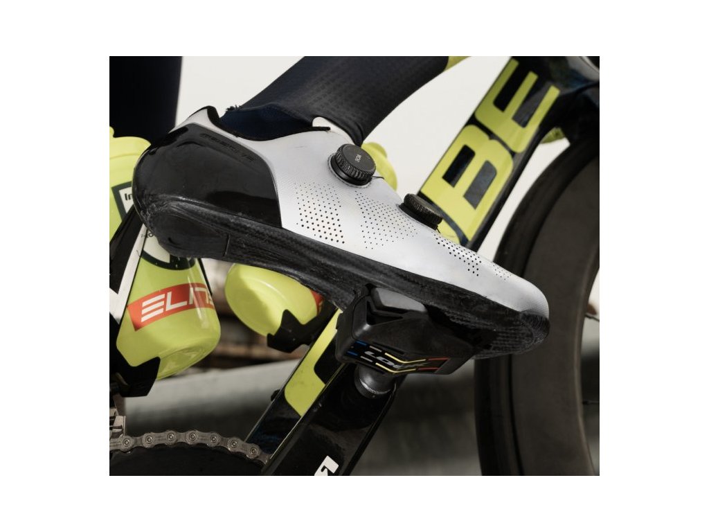 Silniční pedály, které integrují patentovanou technologii Blade společnosti LOOK do aerodynamicky optimalizovaného karbonového těla, poskytují lehkost, stabilitu a trvanlivost, ale především velkou opěrnou plochu pro maximální přenos síly při každém šlápnutí do pedálů. Pedál Keo Blade vážící pouhých 110 g (1 pedál) je navržen pro intuitivní zapínání/vypínání, bezpečnou oporu, stejně jako pro pohodlí a vyrovnanou efektivitu pro zvýšení vašeho výkonu na silnici. Vyvinuty společností LOOK pro optimalizaci vašeho výkonu.Zvýšené pohodlí705 mm² kontaktní plochy pro boty a podpůrnou šířkou 64 mm, pedál Keo Blade zajišťuje rovnoměrné rozložení tlaku pod nohou při každém šlápnutí do pedálů. Toto uspořádání minimalizuje riziko „pálení nohou“ nebo nepohodlí v botě, bez ohledu na tuhost vašich bot. Složený ze tří nerezových destiček, prodloužená opěrná plocha poskytuje zvýšenou stabilitu, snižuje nežádoucí pohyby a boční naklánění během šlapání.Zjednodušené nastavení předpětíTechnologie Blade nabízí 4 úrovně napětí: 08/12/16/20. Během méně než 30 sekund pomocí jednoho specializovaného nástroje můžete vyměnit list a vybrat si ideální předpětí.Aerodynamický designNový design optimalizuje přední části a vyhlazuje přechod mezi botou a pedálem, čímž snižuje aerodynamický odpor pedálu. Elegantní linie listu harmonicky ladí, posouvají pedál Keo Blade na vrchol jeho kategorie z hlediska aerodynamiky. Toto spojení estetiky a efektivity předdefinovává standardy výkonu pro náročné cyklisty.Osa pedálu: Chromoly +Technologie: BladeMateriál těla: CarbonPlocha platformy: 705 mm²Šířka platformy: 64 mmCelková výška (pedál + kufr): 14,8 mm ( 8,5 + 6,3 )Q-Factor: 53 mmPředpětí vypínání: Sériově instalovaný 08 (další možnost dokoupit 12/16/20)Kufry: Keo GripMateriál listu Blade: KompozitVáha jednoho pedálu: 115 gVáha páru + kufry: 300 g
