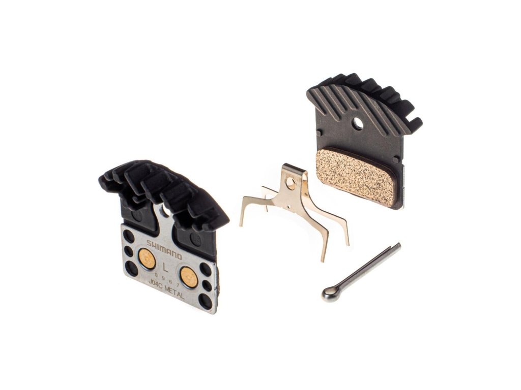 Brzdové platničky metal s chladičom J04C. Kompatibilné s brzdami BRM9000/9020/987/985/8100/8000/785/7100/7000/675/666/6000/615, BRS700, BRCX77, BRRS785, BRR785/517/317.