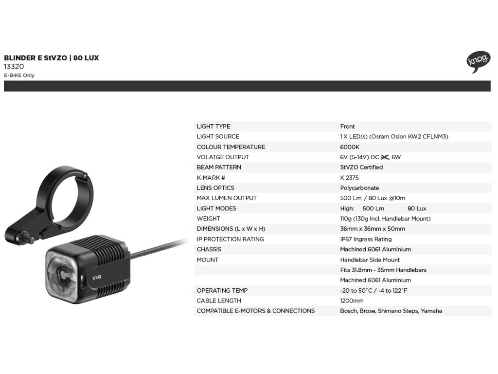 Přední světlo KNOG Blinder E-bike 500 lm/80 Lux StVZO