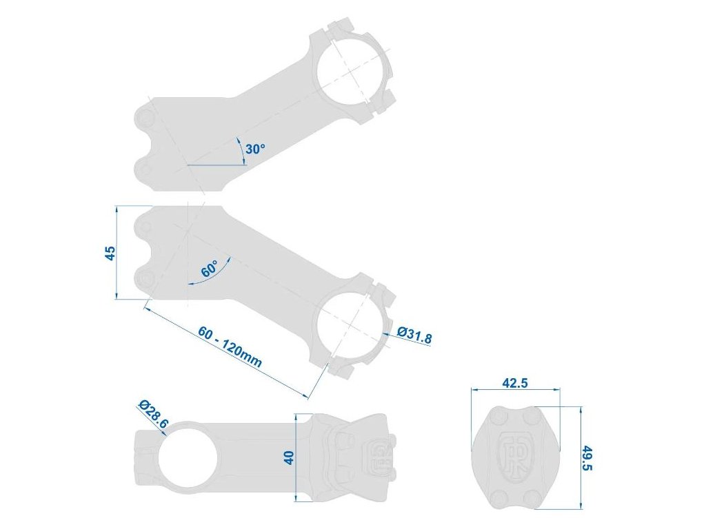 Tuhý MTB/treking predstavec zo zliatiny 6061, uhol 30 stupňov, hmotnosť 170 g pri 110 mm, objímka pre riadidlá 31,8 mm.Dizajn uťahovania predstavca znižuje záťaž na karbónové vidlice. Súčasťou sú nerezovéskrutky.
