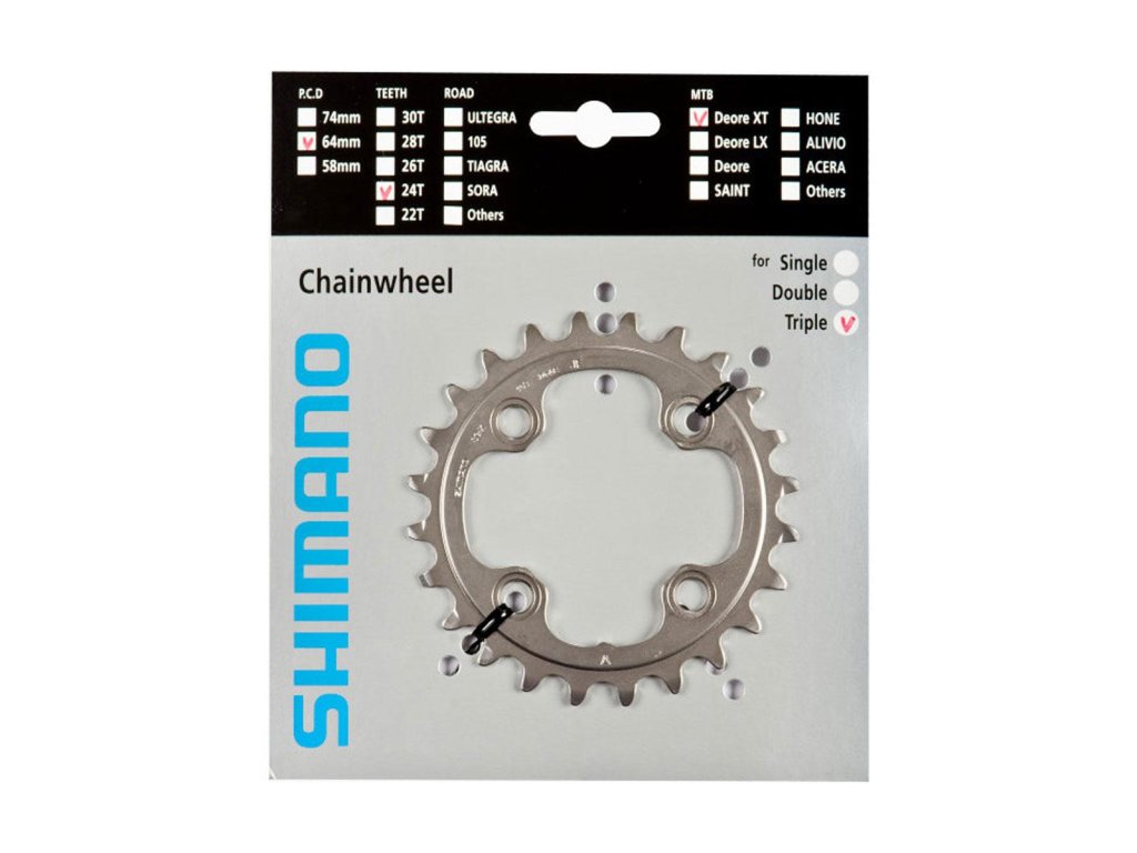 Najmenší prevodník XT pre kľuky FCM780, 10-kolo, 24 zubov. Bez nábehových zubov. Pre trojprevodník.