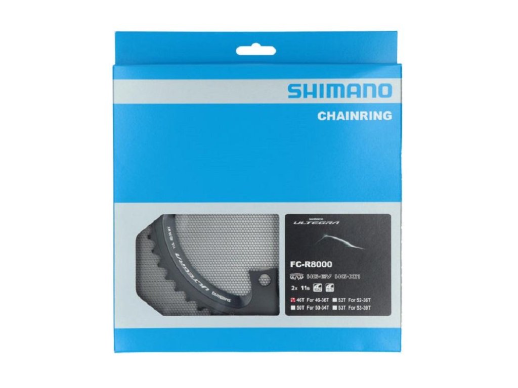 Prevodník Ultegra 46 zubov pre kľuky FC-R8000 ( 11-rýchlostné ). Veľký prevodník pre kľuky s použitím pre cyklokros alebo gravel (46/36), pre 11-kolo, so špeciálnymi zubami zabezpečia vynikajúcu úroveň radenia za akýchkoľvek jazdných podmienok.