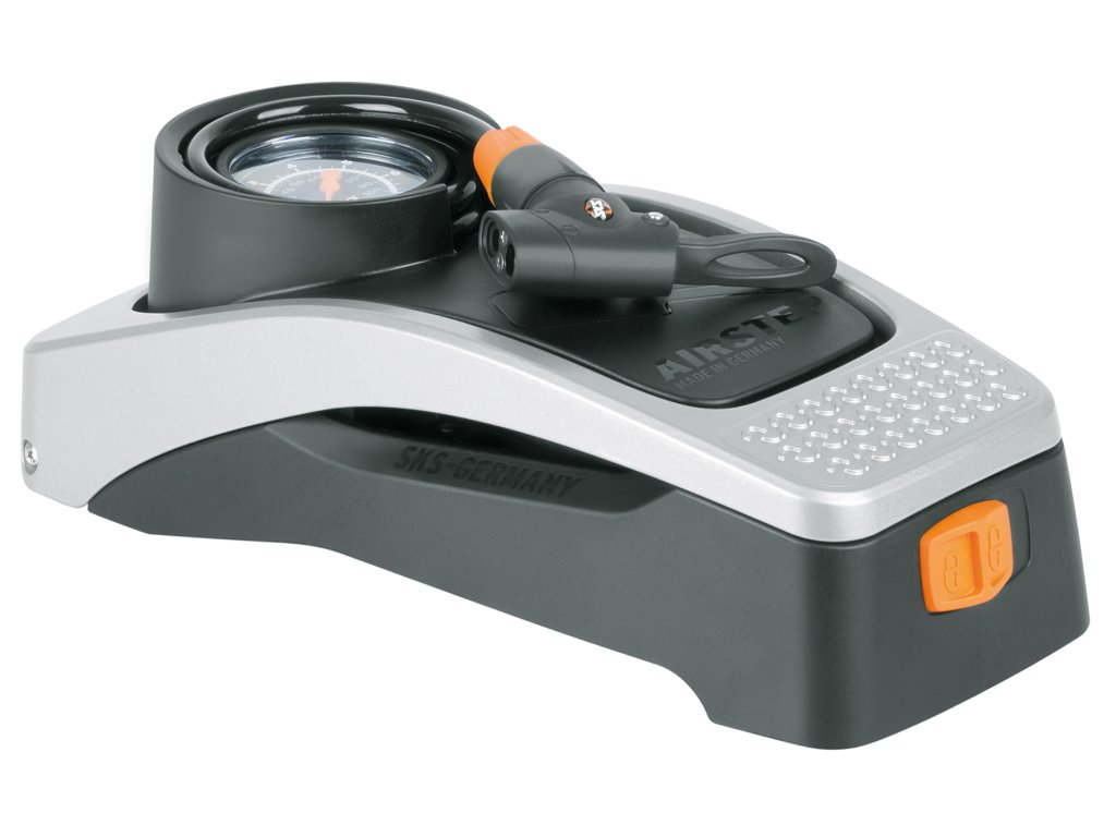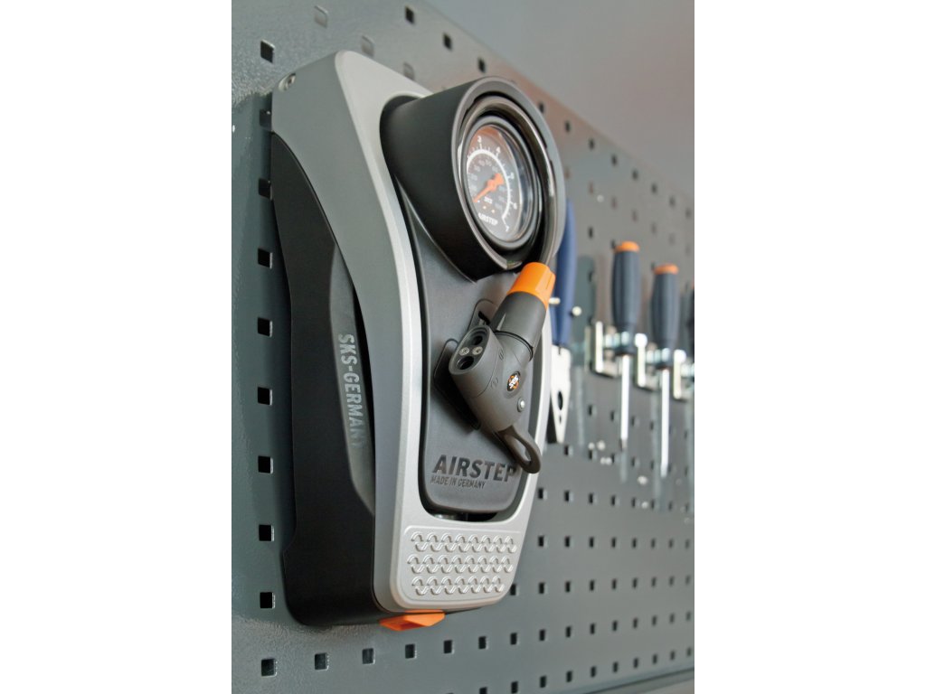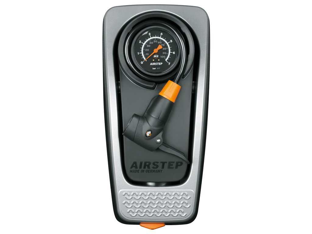 Nožná pumpa SKS Germany AirStep kombinuje vlastnosti klasickej pumpy a najnovšie technológie Made in Germany. Prvotriedny materiál najvyššej kvality, koncept konštrukcie a užívateľsky prívetivé funkcie (veľký manometer, integrovateľná špirálová hadica s ventilkovou hlavicu pre všetky druhy ventilčekov) dávajú pumpe úplne nový a inovatívny vzhľad. Ergonomický robustný hliníkový nožný pedál umožňuje maximálne možné natlakovanie 7 bar/102 PSI bez ťažkostí. Nahustenie nebolo nikdy tak jednoduché a šetrné pre váš chrbát.Po nafúkaní je pedál stlačený a tlačidlom zaistený pre úsporu miesta. Je aj možnosť zavesenia vďaka priloženému nástennému držiaku.Max. tlak: 7 bar/102 PSIIntegrovaná hadica na všetky typy ventilčekovMožnosť aj zavesenia na stenuHliníkové madlo