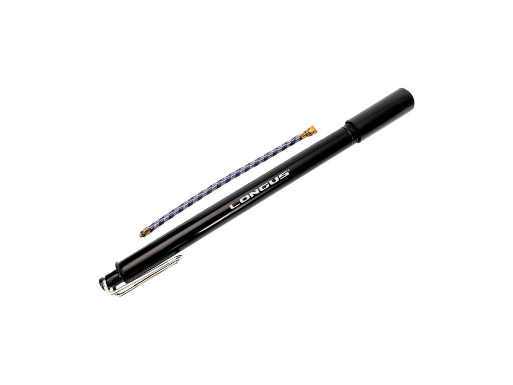 Oceľová pumpa do rámu s opierkou pre lepšiu stabilitu a otvorom pre uschovanie hadičky, ktorá je v cene.