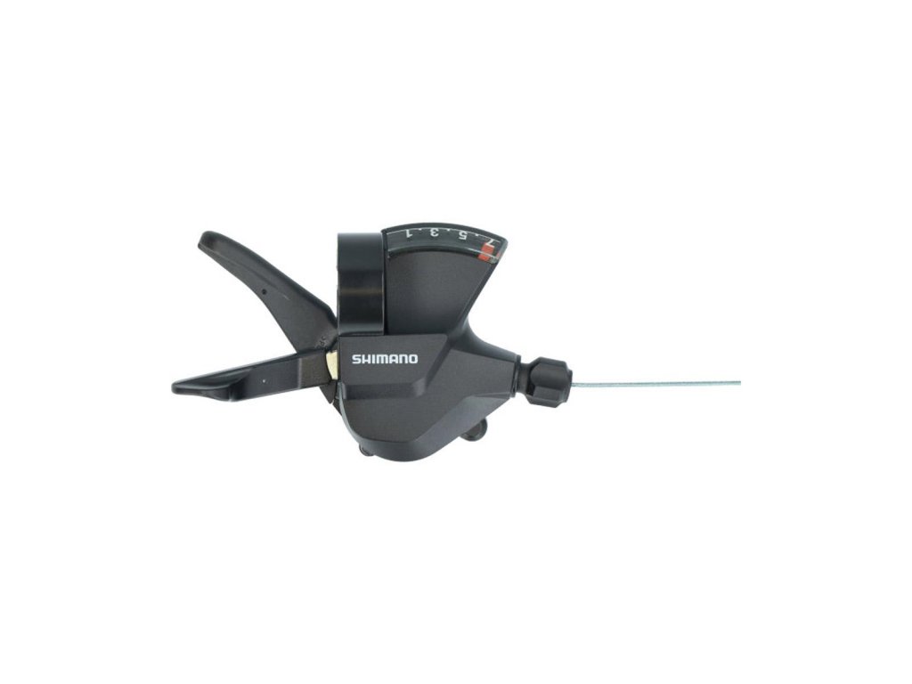 Typ: MTB, Celková váha balenia: 239g, 7 rýchlostné, Pravé, Rapidfire Plus, Typ montáže: Na objímku, s ukazovateľom, čierne, Materiál: Hliník / Oceľ / Plast